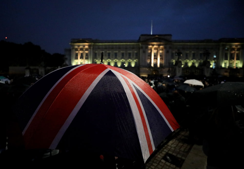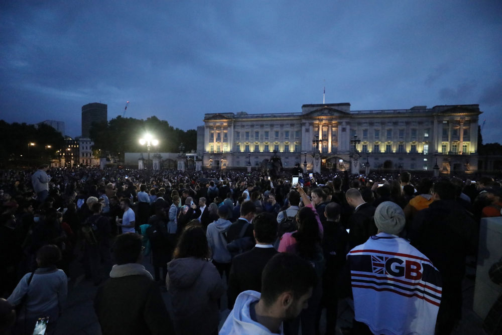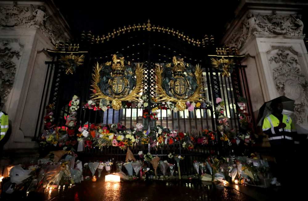 ↑9月8日,民众聚集在英国伦敦的白金汉宫外。新华社记者李颖摄