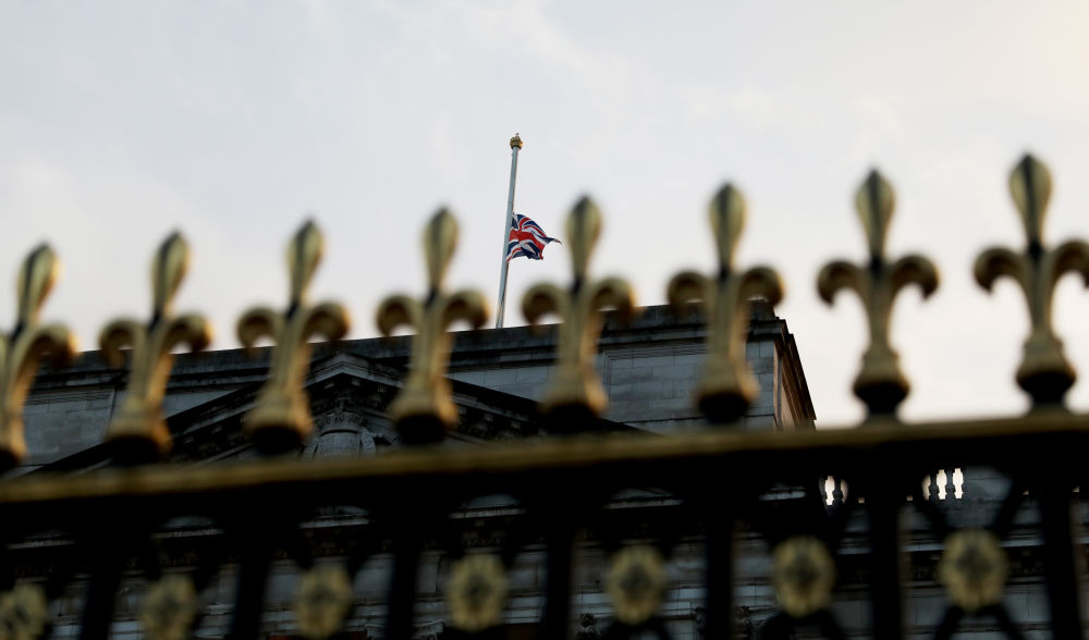 ↑9月8日,英国伦敦的白金汉宫降下半旗。新华社记者李颖摄