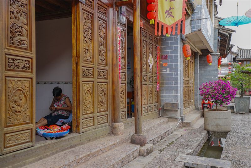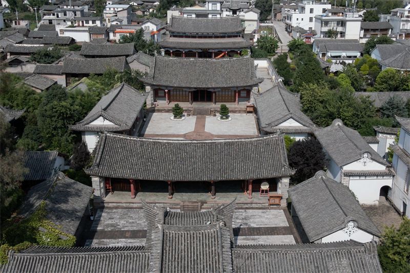 古镇的街道呈“坤”字回型街布局,一条条被磨得光亮的石板路,弯弯曲曲不知通往哪个街头还是巷尾,街巷两旁则是古老的明清建筑。有元代设置的姚安路军民总管府、文昌宫、三丰祠、中西合璧的高雪君祠、名人故居等建筑,更有始建于唐天佑年间的龙华寺。