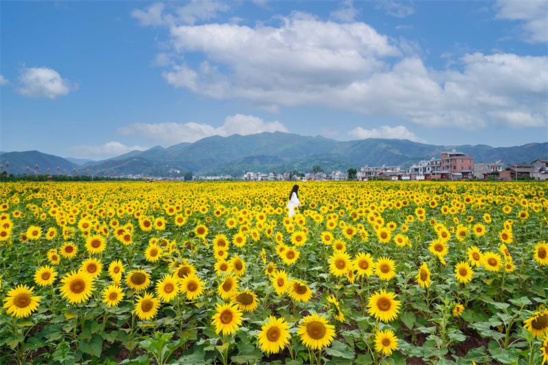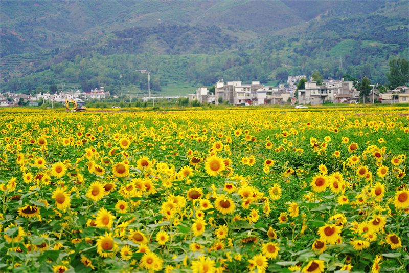 从姚安县城往光禄古镇出发,驾车十多分钟即可到达这片美丽花海,车可以直接开到花海边,下车沿着花间小路,穿梭于整片整片的向日葵中,满满都是阳光的味道。