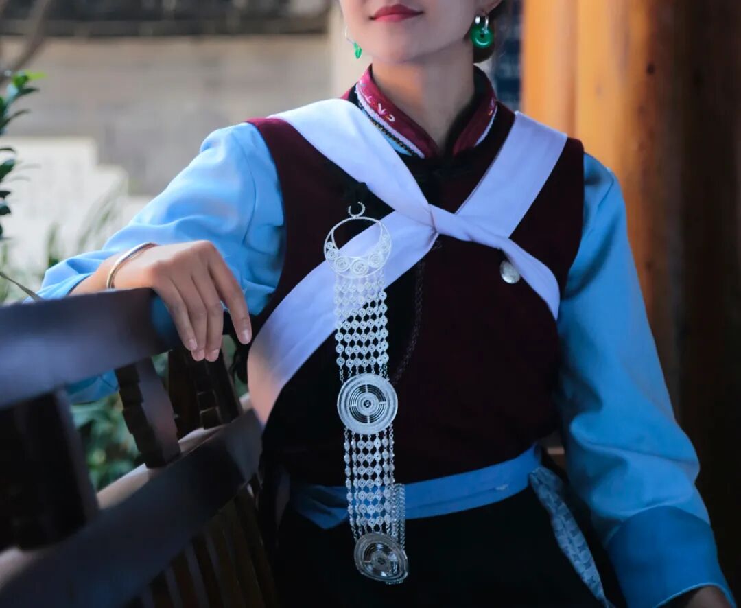 一到出席重要场合,纳西族女性都会将珍藏多年最地道的“披星戴月”穿在身上,搭配着银首饰(耳环、挂饰、手镯等),为这套纳西礼服增添仪式感,也增加了传统的民族情结。