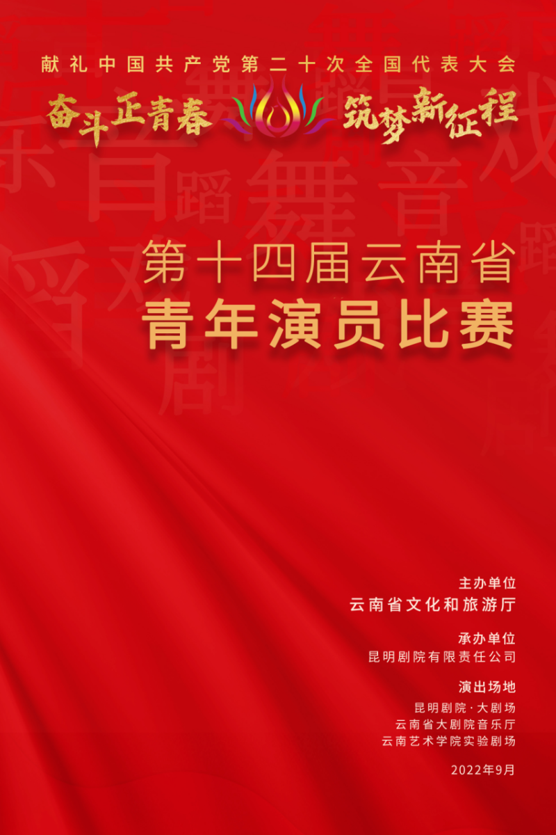 以“奋斗正青春·筑梦新征程”为主题的第十四届云南省青年演员比赛,将于9月16日晚,在云南艺术学院实验剧场正式拉开帷幕。本届比赛由云南省文化和旅游厅主办、昆明剧院有限责任公司承办,来自省直院团、州(市)专业文艺表演团体、艺术院校、民营企业等251名青年艺术才俊,将以精湛的技艺、良好的风貌、精彩的表演为即将召开的党的二十大献礼。