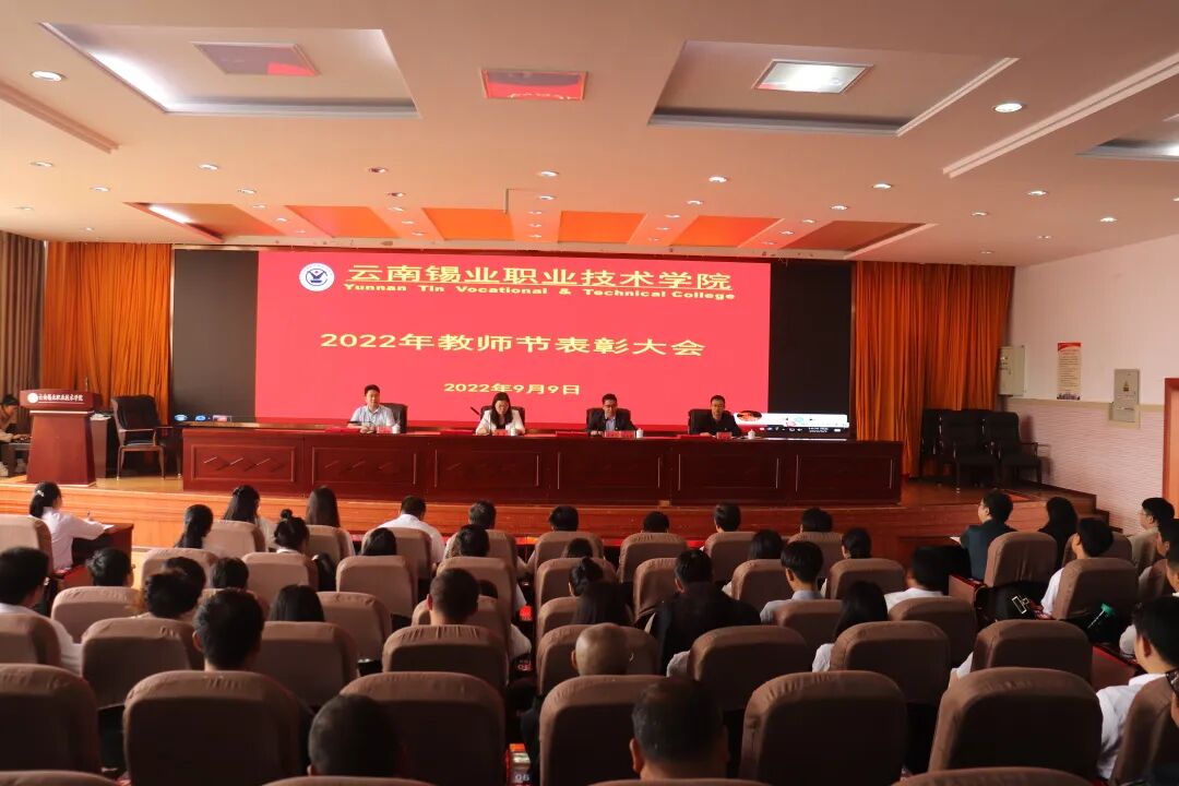 9月9日下午,云锡职业学院召开了2022年教师节表彰大会。大会表彰了在教育教学、科学研究、管理服务、社会服务等方面做出突出贡献的2个先进集体,14名优秀教师,8名先进教育工作者,9名优秀班主任,2名优秀辅导员。