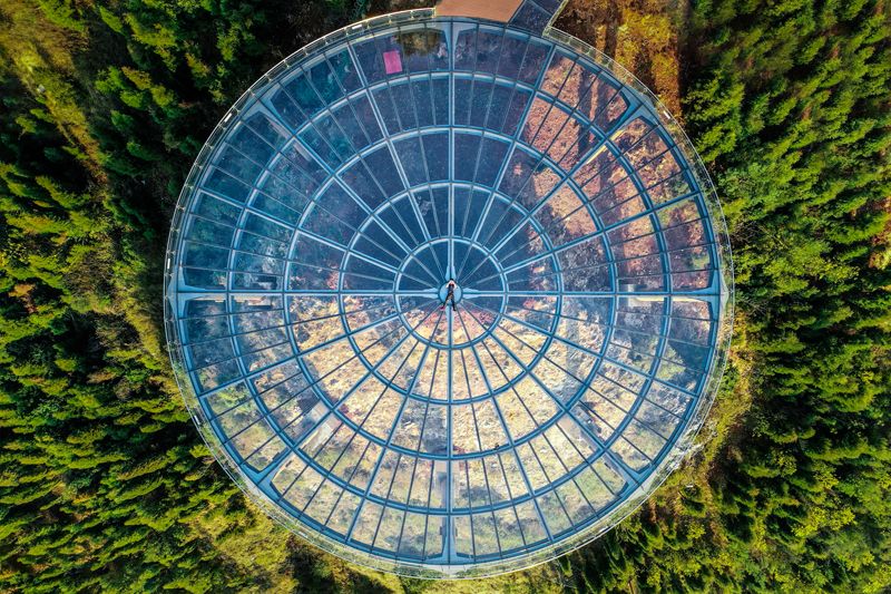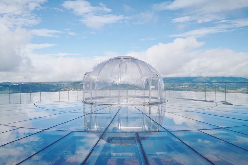 老阴山玻璃栈道依山而建,站在栈道上俯瞰,脚下层叠大厦,往来车流,是全国唯一一个建在城市上空的玻璃栈道,行走其间宛如在城市上空的山峦间踏云而行。在这里,随手便可以拍出大片,每一张都是云端天际的感觉。