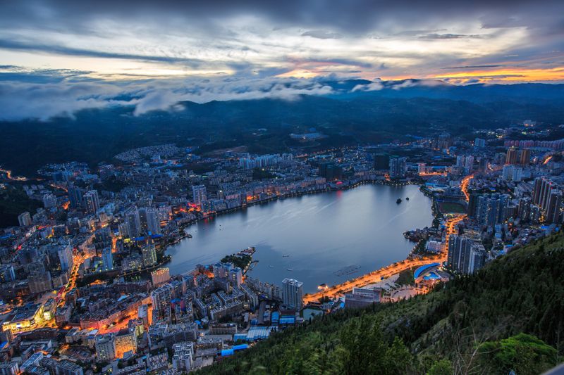 不同地方的人有不一样的情怀,而个旧人的情怀,和山息息相关。个旧群山环抱,东面老阴山、西面老阳山,阴山峻峭高耸、阳山壮阔起伏,城区围绕金湖而建,山湖交融,是一座完美的花园之城。
