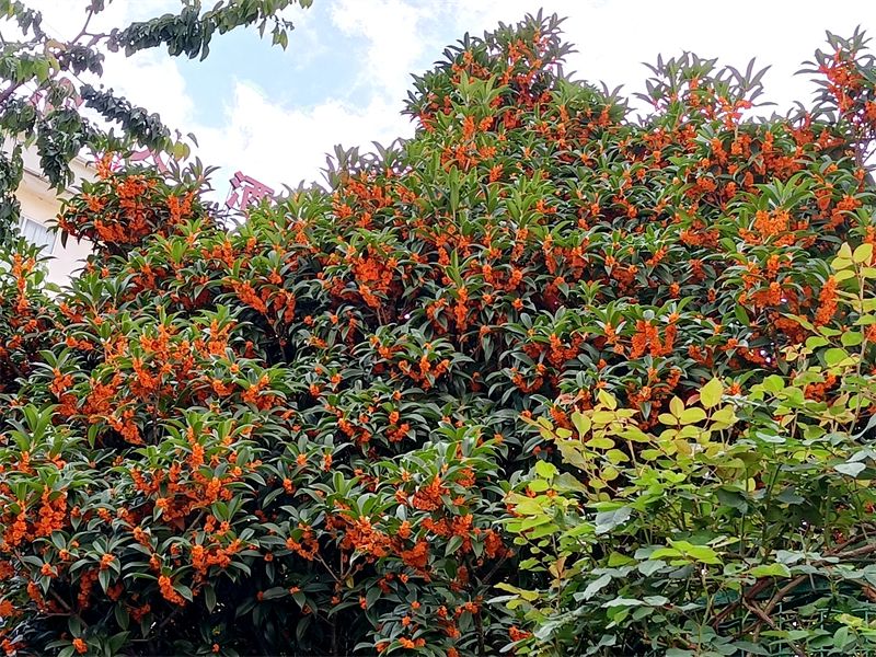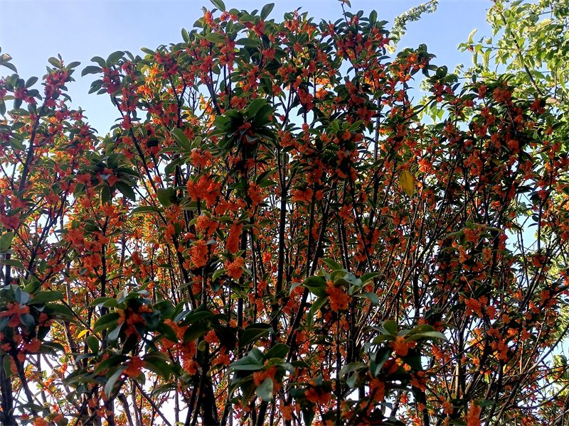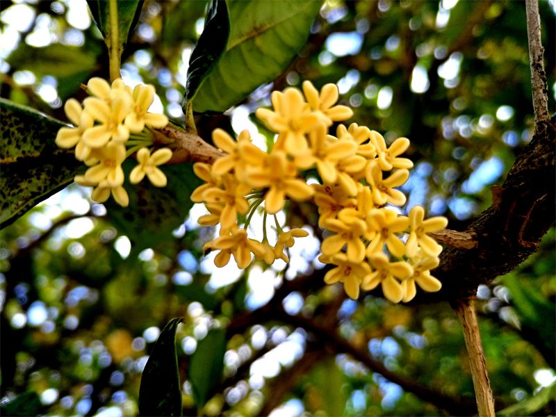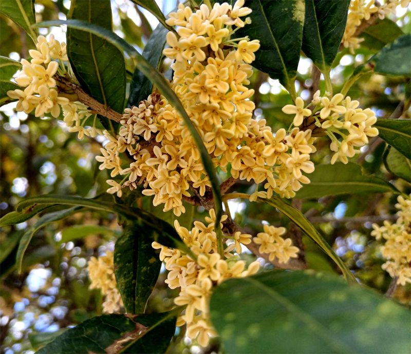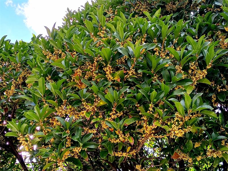 走在大大小小的街道、不知名的小径上,不时可闻见桂花香浮动,再走一段路,阵阵袭人花香便扑鼻而来。在桂花树下驻足仰面,就能感受香气由扑鼻入了心,自己的衣袖、身上也都会沾上桂花的香味,这时,你定不禁感觉:金秋,世界都是香的。