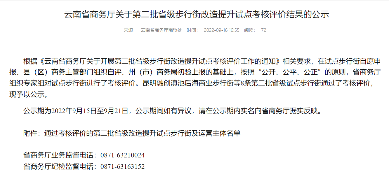 云南省商务厅发布