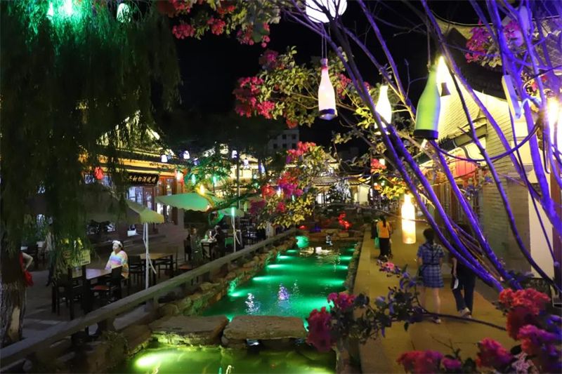 古镇里,客栈、商铺、小食坊林立,游人可以品尝各种特色美食,感受“舌尖上的禄丰”。漫步古镇文瑞步行街,可以感受金山古镇的马帮文化和别样风情,体验非遗展演、快闪舞蹈、篝火晚会等各种好玩有趣的活动。