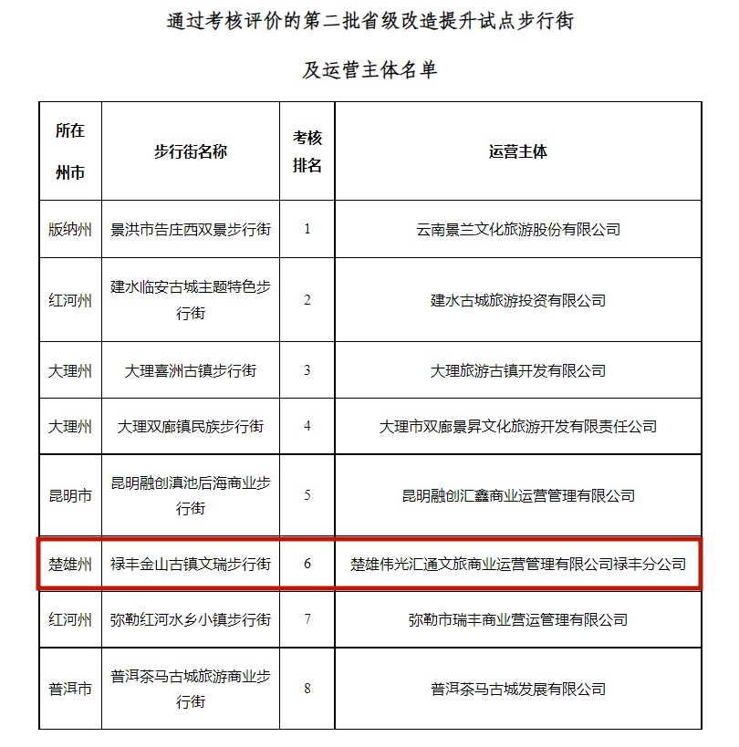 楚雄州禄丰市金山古镇文瑞步行街入列