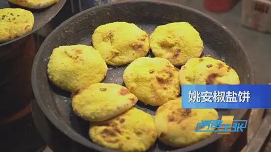 楚雄姚安的椒盐饼,在众多小吃中独树一帜,已有上千年的历史。发酵好的面团加上小苏打,分成小团,裹上香油、胡椒粉、葱肉末、玫瑰糖,可甜可咸,然后把锅放在木炭火上,上下一起烤,烤出来的饼两面金黄,香酥松软。
