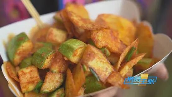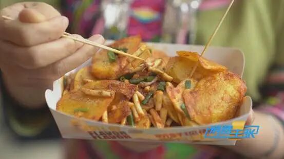 楚雄人喜爱洋芋,可以和菌子、小瓜、豆腐、折耳根等各种食材搭配。沙地的洋芋口感较沙,第一次高温油炸断生,再换180度中温,把外皮炸焦,拌上辣椒等调料增香,一天能卖200斤左右。