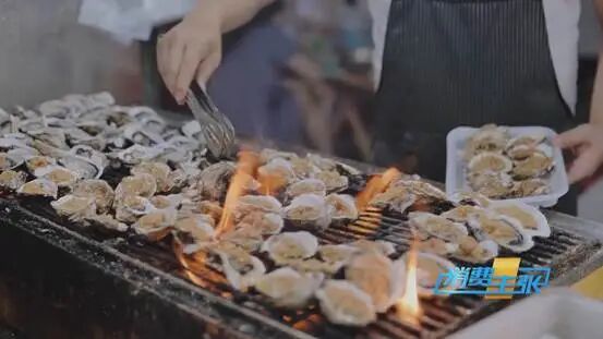 在炭火上,放入蒜蓉、小米辣,滋滋啦啦地烤生蚝,一晚上能卖出一两千个,好吃到停不下来。