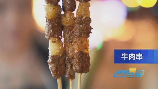 火车星光集市上,还有一个火爆的牛肉串,用的是当天的新鲜牛肉,瘦肉之间串上两块肥肉,提前腌制再烤制,等到牛肉烤到流油,再撒上孜然、小茴香和楚雄辣椒。