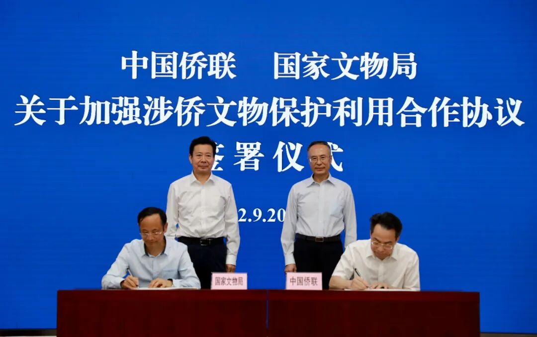 9月20日,国家文物局与中国侨联在北京签署《关于加强涉侨文物保护利用合作协议》。文化和旅游部副部长、国家文物局局长李群,中国侨联党组书记、主席万立骏出席签署仪式并讲话。国家文物局副局长顾玉才、中国侨联副主席候选人连小敏分别代表双方签署协议。