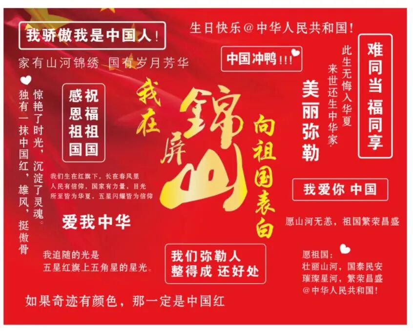 在“爱国墙”签名,写下你对祖国的生日祝福语。