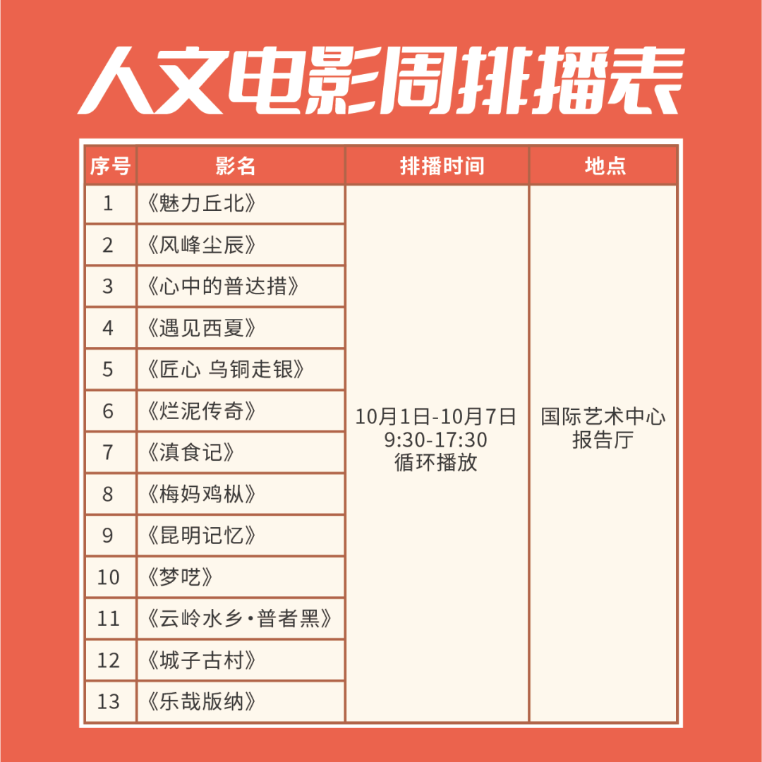 7天,13部人文电影,艺术电影周带你挨个看!风光纪录片、非遗纪录片、美食纪录片、数字特效片……艺术学院的优秀作品,在东风韵国际艺术中心报告厅轮番亮相,将云南之美完美呈现,打卡不可错过!