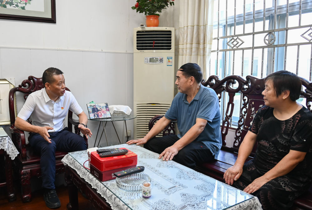 在浙江省宁波市奉化区萧王庙街道滕头村,傅平均(左)入户走访村民,听取意见和建议(9月16日摄)。新华社记者 黄宗治 摄