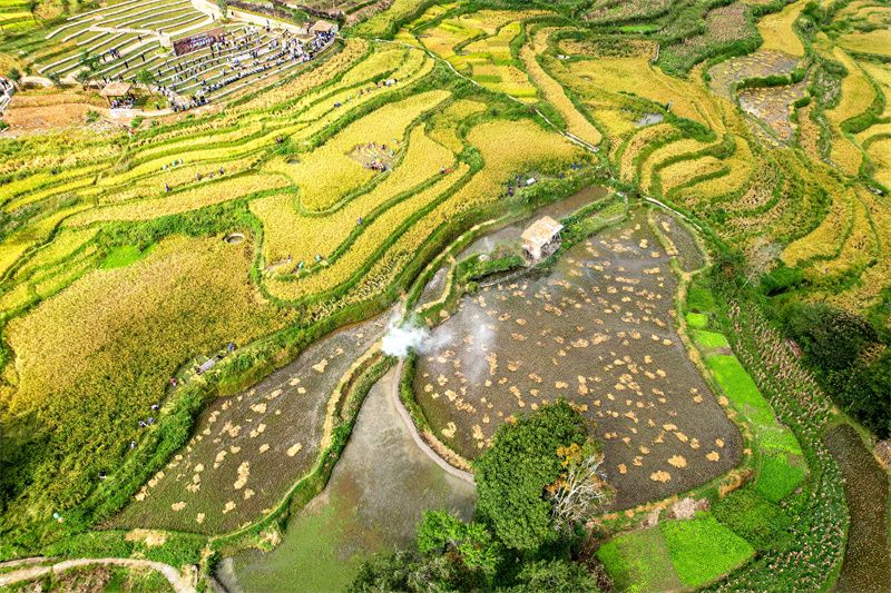 金秋十月,梯田里的稻穗金黄饱满,风里带有稻花的清香。