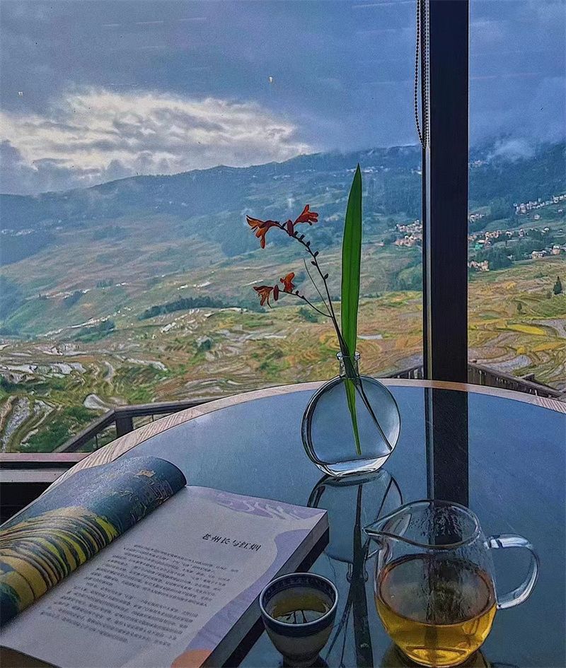 午后,你可以一边欣赏梯田美景,一边品香茗,乡间的下午茶,也可以如此惬意。