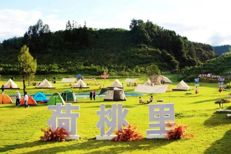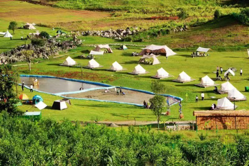 其实,这样的精致露营就在蒙自也可以体验,开车1小时左右就可以到达位于蒙自芷村的“荷桃里”露营基地。