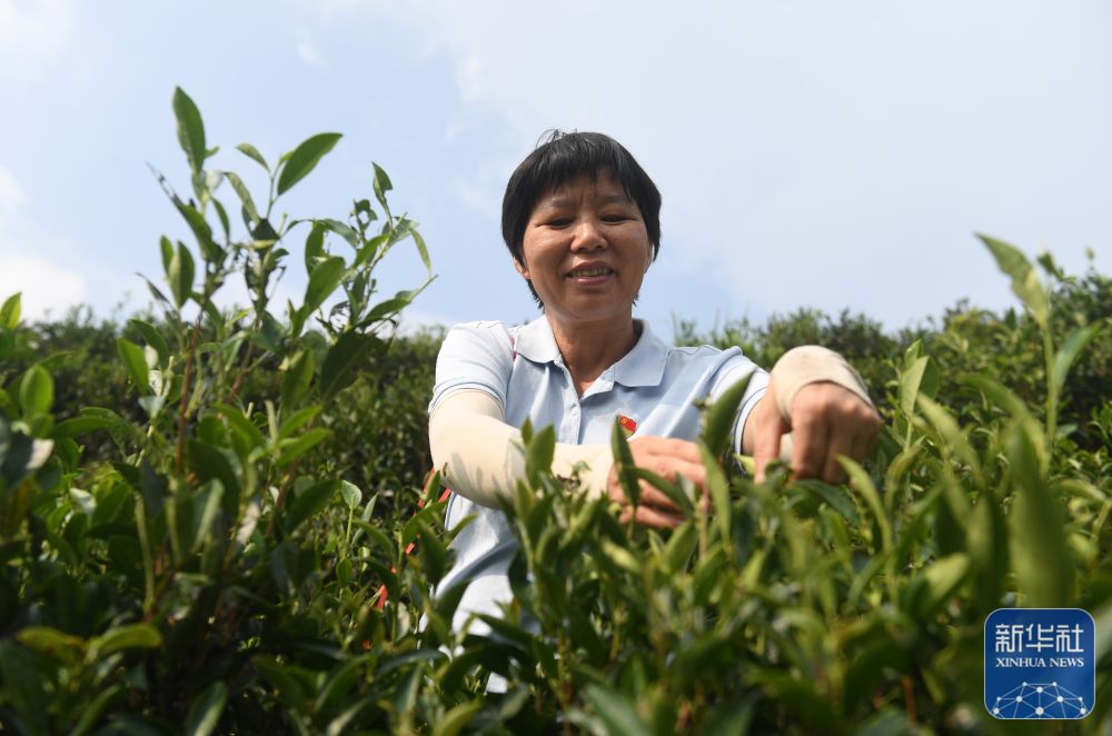 祝雪兰在广西苍梧县六堡镇山坪村采茶(2022年9月22日摄)。新华社记者 陆波岸 摄