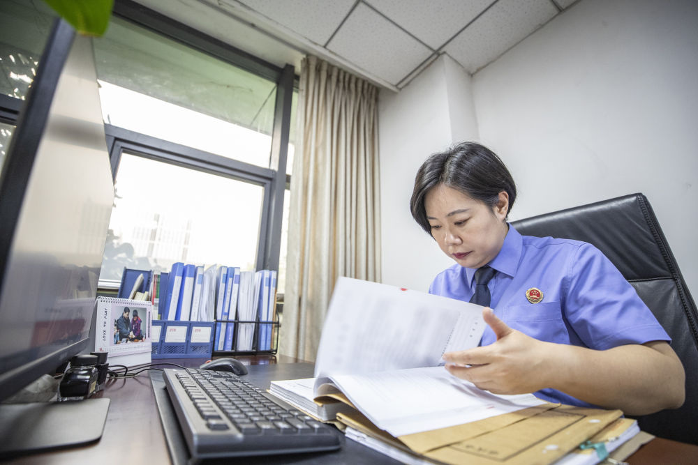 9月20日,在重庆市大渡口区人民检察院,梅玫在办公室内查阅最近侦办未成年案件的卷宗。新华社记者 黄伟 摄