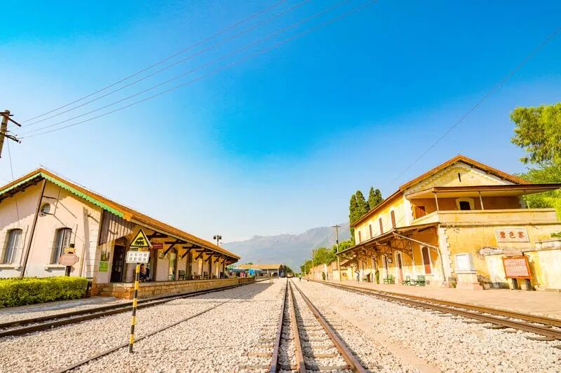 石屏火车站是中国第一条民营铁路——个碧石铁路的重要车站之一。几幢法式建筑的小洋楼典雅别致,明黄色的车站外墙、绿色的门窗屋檐。站台前,满是岁月痕迹的铁轨向东西方向延伸。