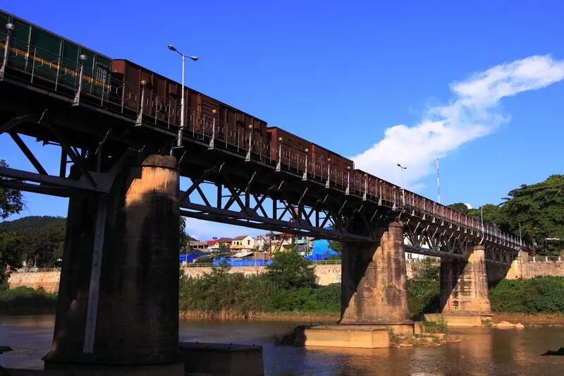 距河口火车站大约50米的中越大桥,是滇越铁路国际联运的唯一通道。在中越大桥旁,矗立着一块刻着“中国”两个大字的界碑,南端就是越南。桥下,湍急的南溪河翻波涌浪;桥上,百年的滇越铁路风华依然。
