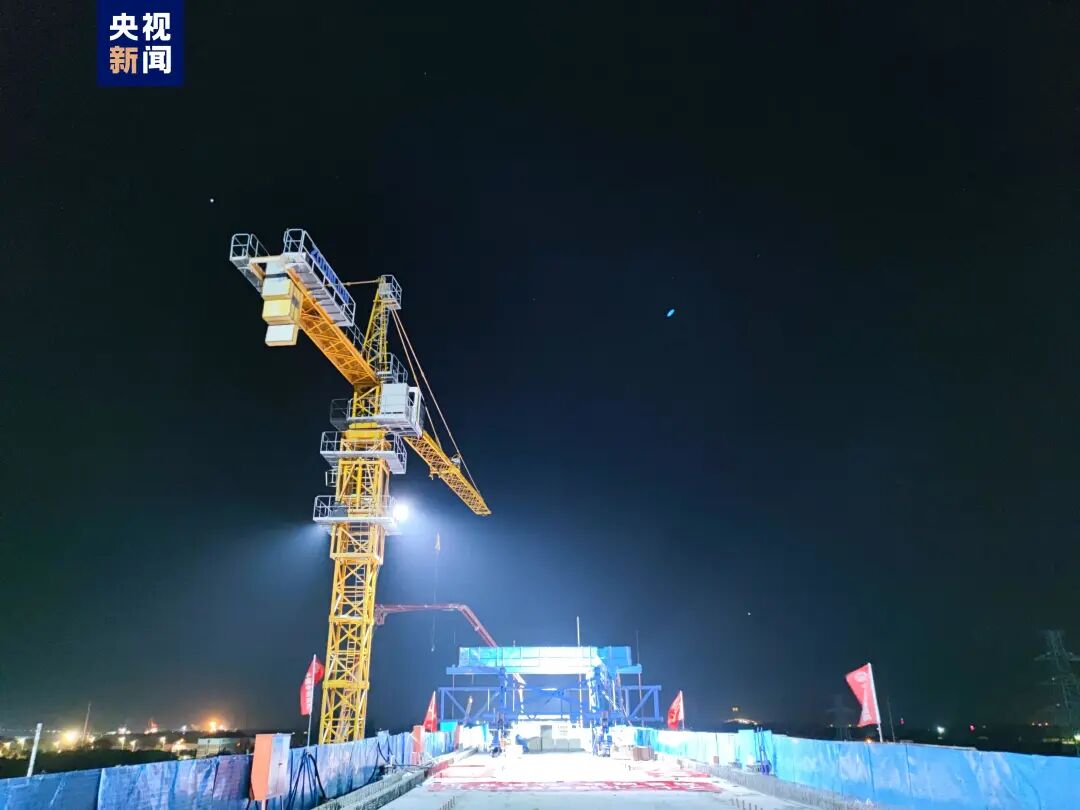 10月14日凌晨4时50分,随着最后一泵混凝土浇筑完毕,巢马城际铁路跨当涂县红旗南路悬臂灌注连续梁顺利合龙,这是巢马城际铁路全线首联合龙的悬灌连续梁,标志着巢马城际铁路建设再取得新进展,为后续其他悬灌梁施工树立了样板,为尽早打通架梁通道提供了有利条件。(来源:央视新闻客户端)