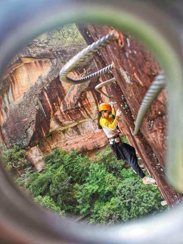 除此而外,依托优越的自然条件,设置的飞拉达探险项目,更受户外旅行者青睐。只需要一点勇气,便可穿行于峭壁之上。