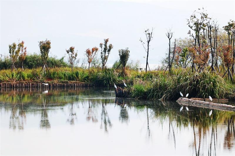 近年来,江川区大力推进生态文明建设、着力解决生态环境问题,积极打造“天蓝、地绿、水清、岸美”的美丽家园,生态文明建设和生态环境保护工作取得了一定成效。如今,星云湖四时风光各不同,步步皆景美如画。