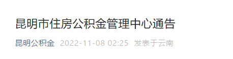 据“昆明公积金”微信公众号的消息,2022年11月8日,昆明市住房公积金管理中心发布通告。详情如下↓