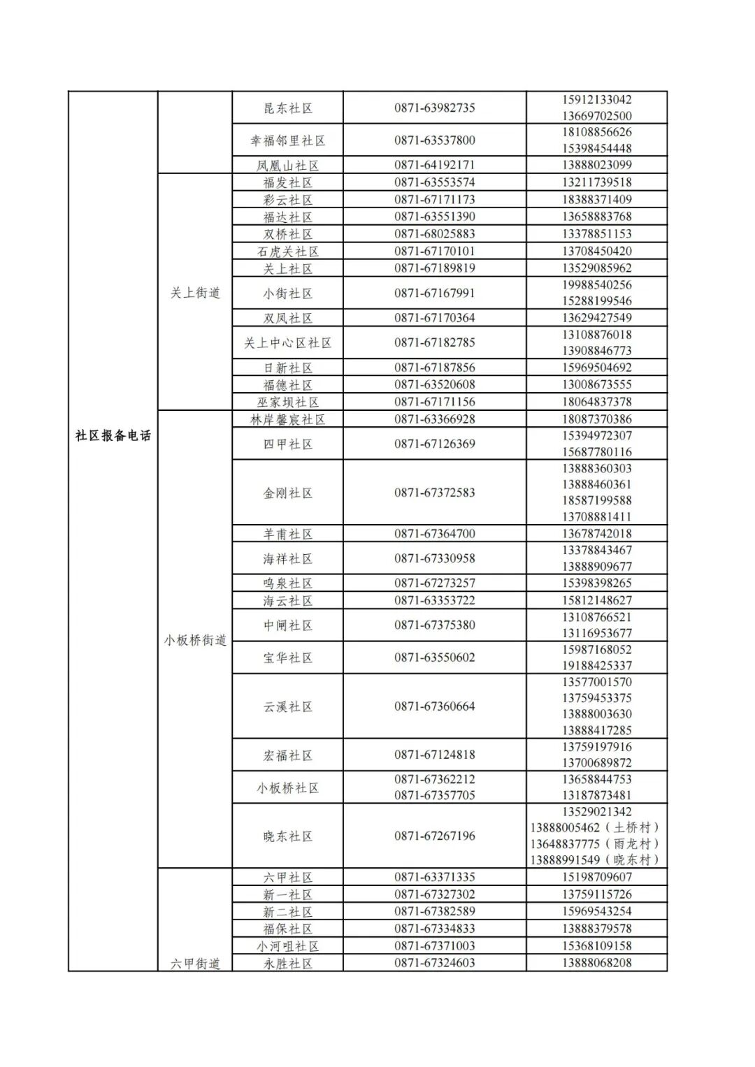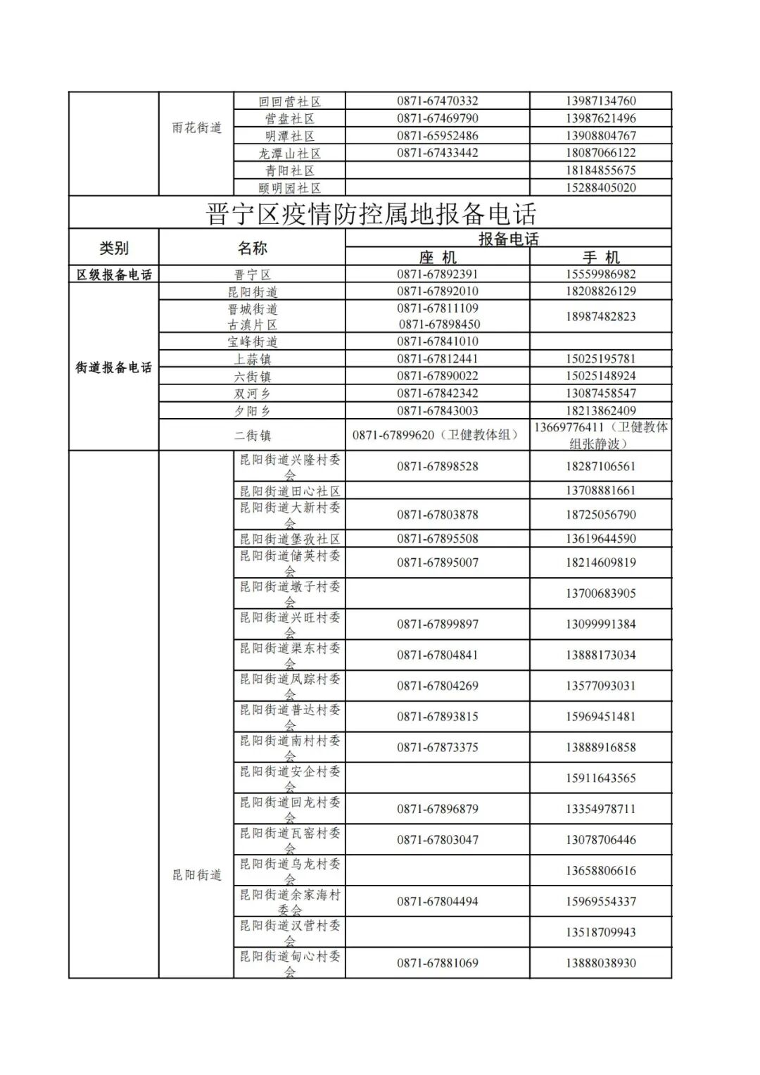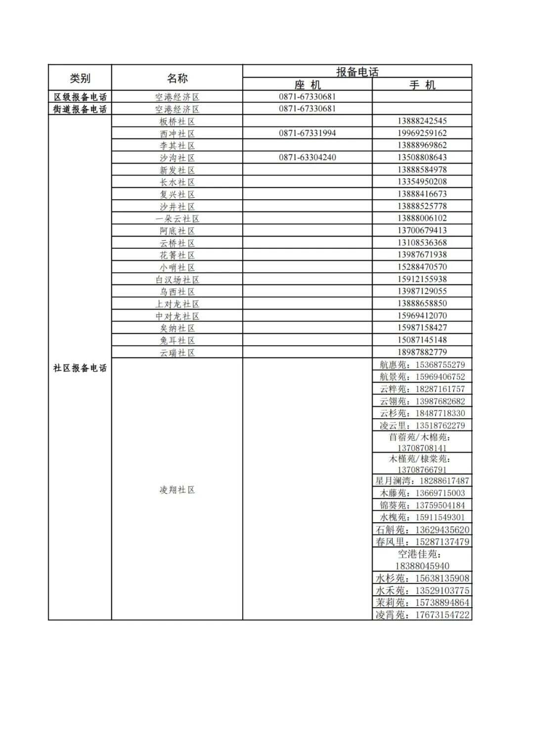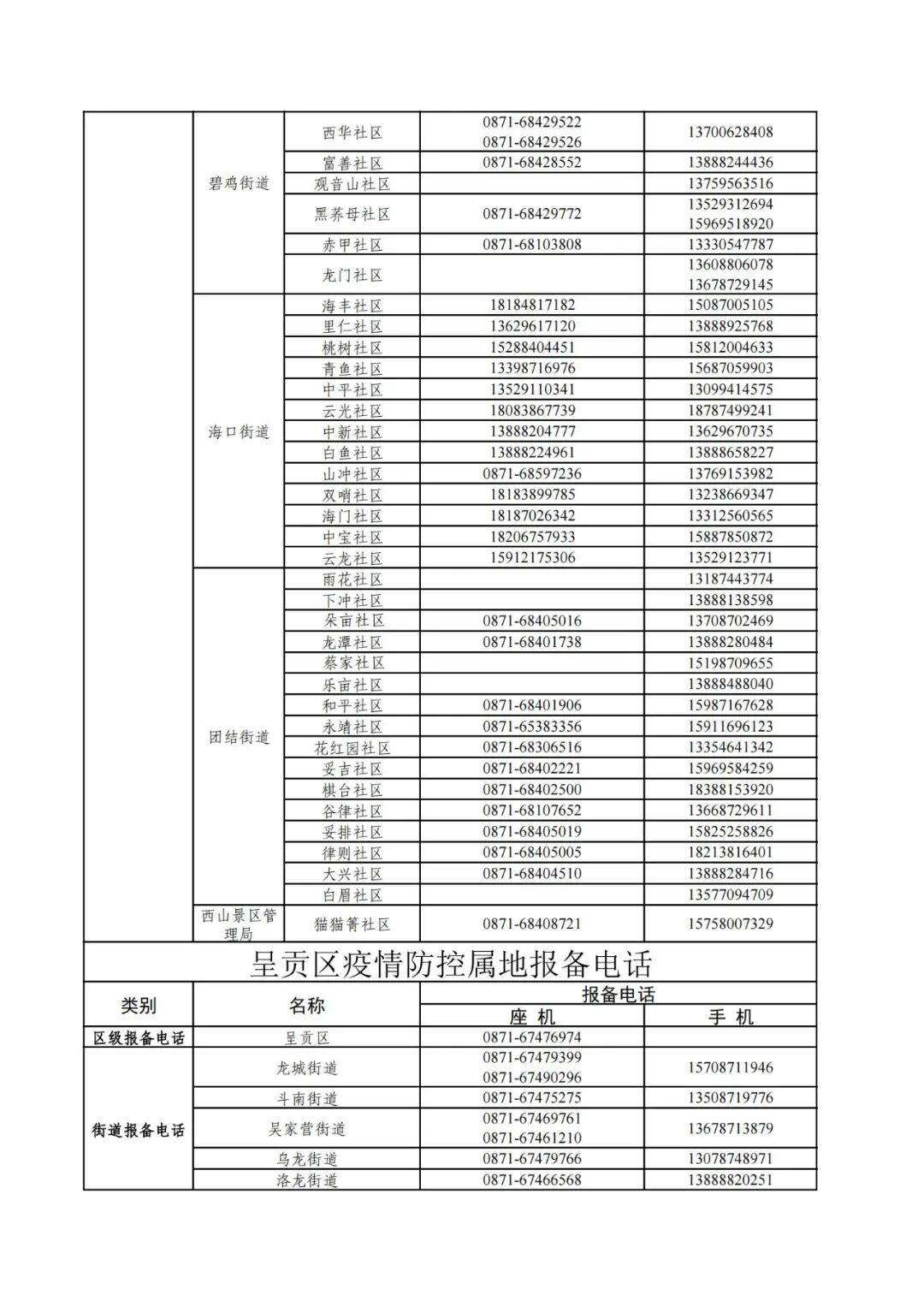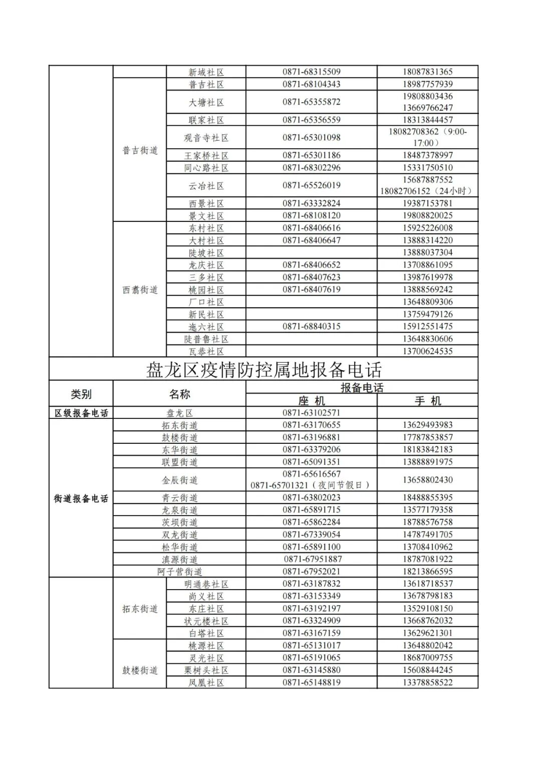 昆明市各县(市)区疫情防控社区报备电话