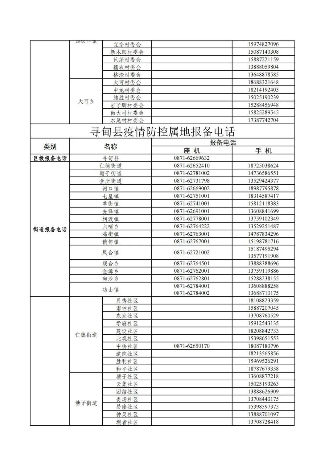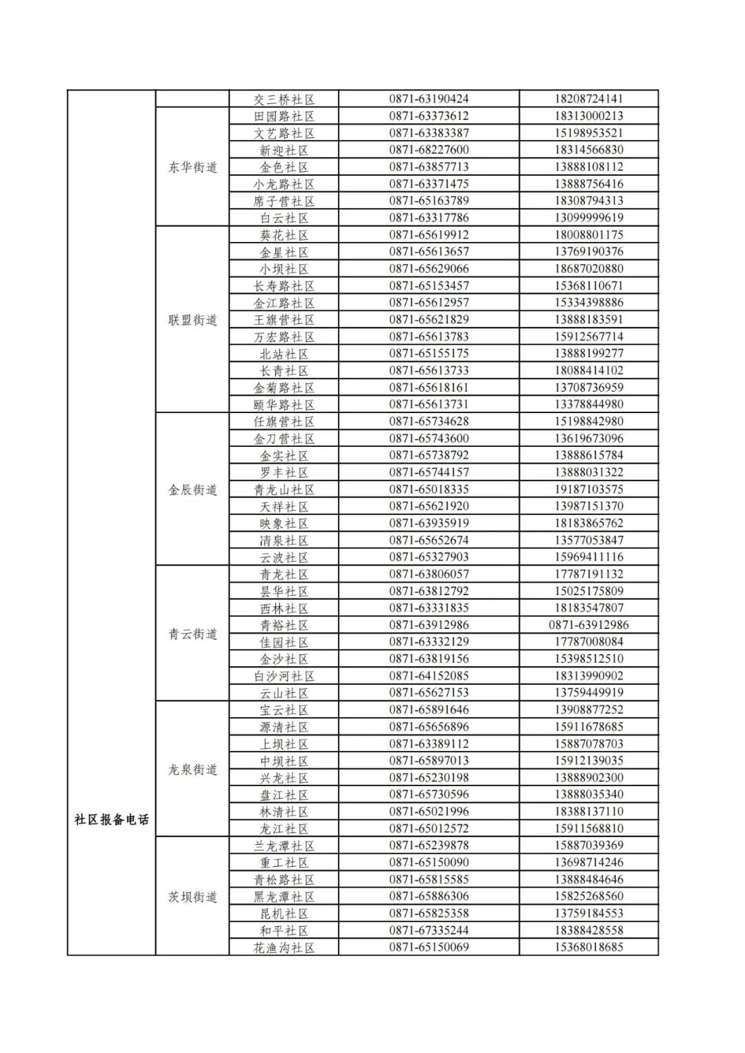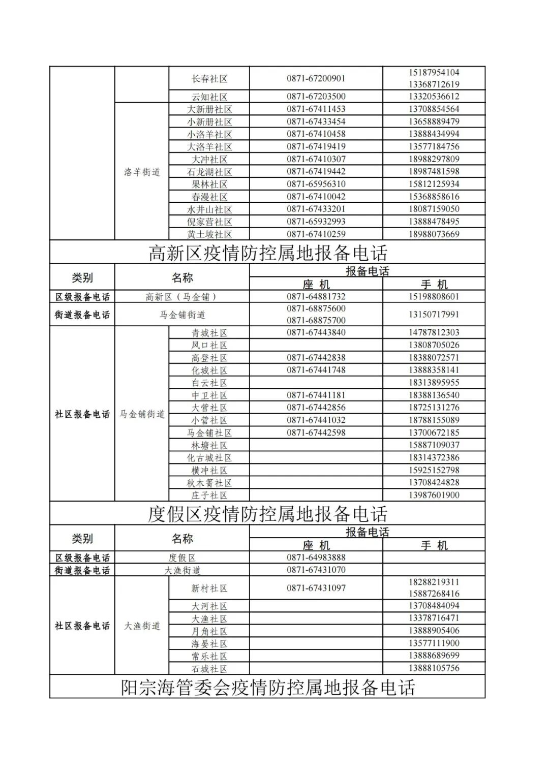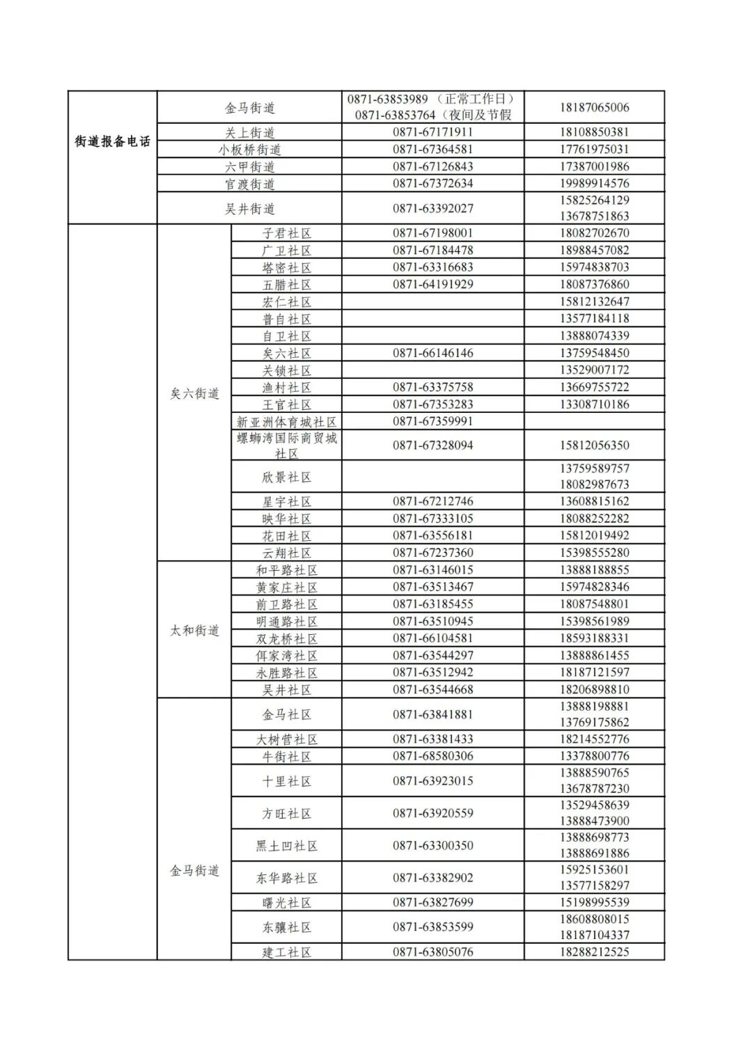 昆明市各县(市)区疫情防控社区报备电话