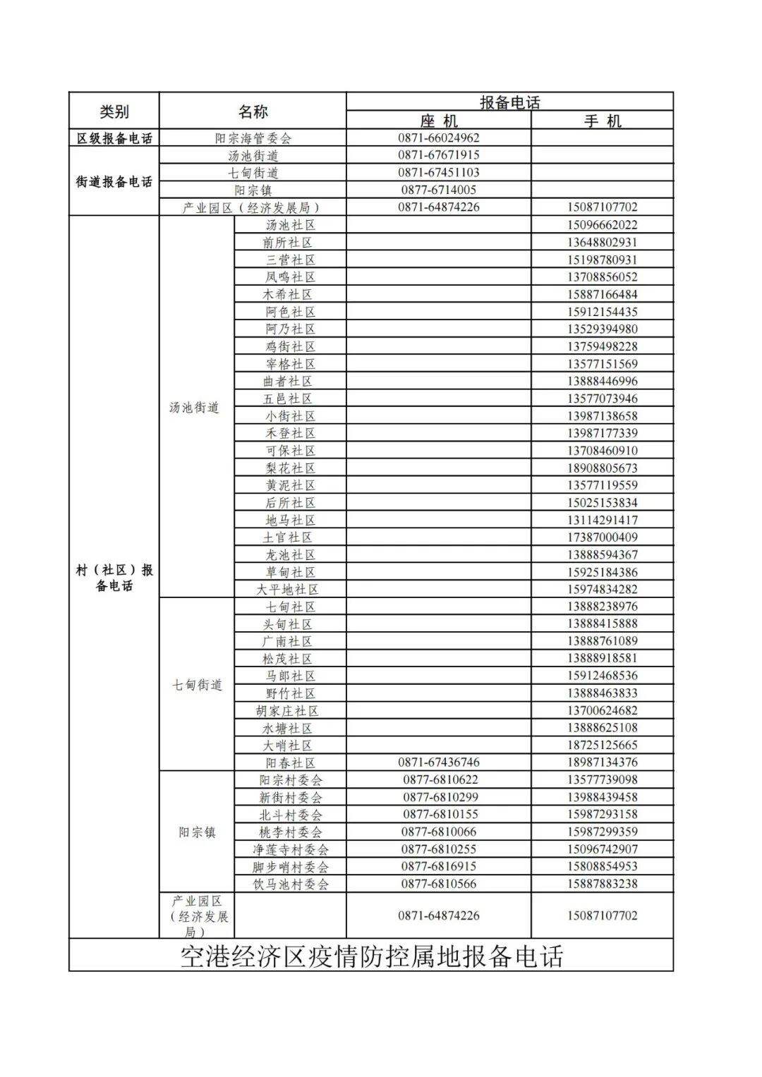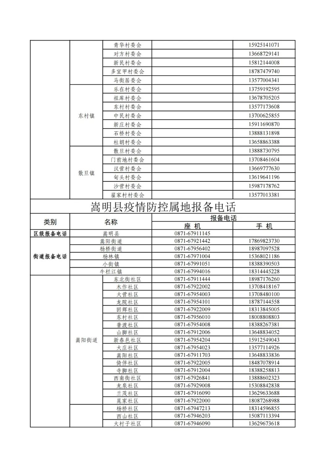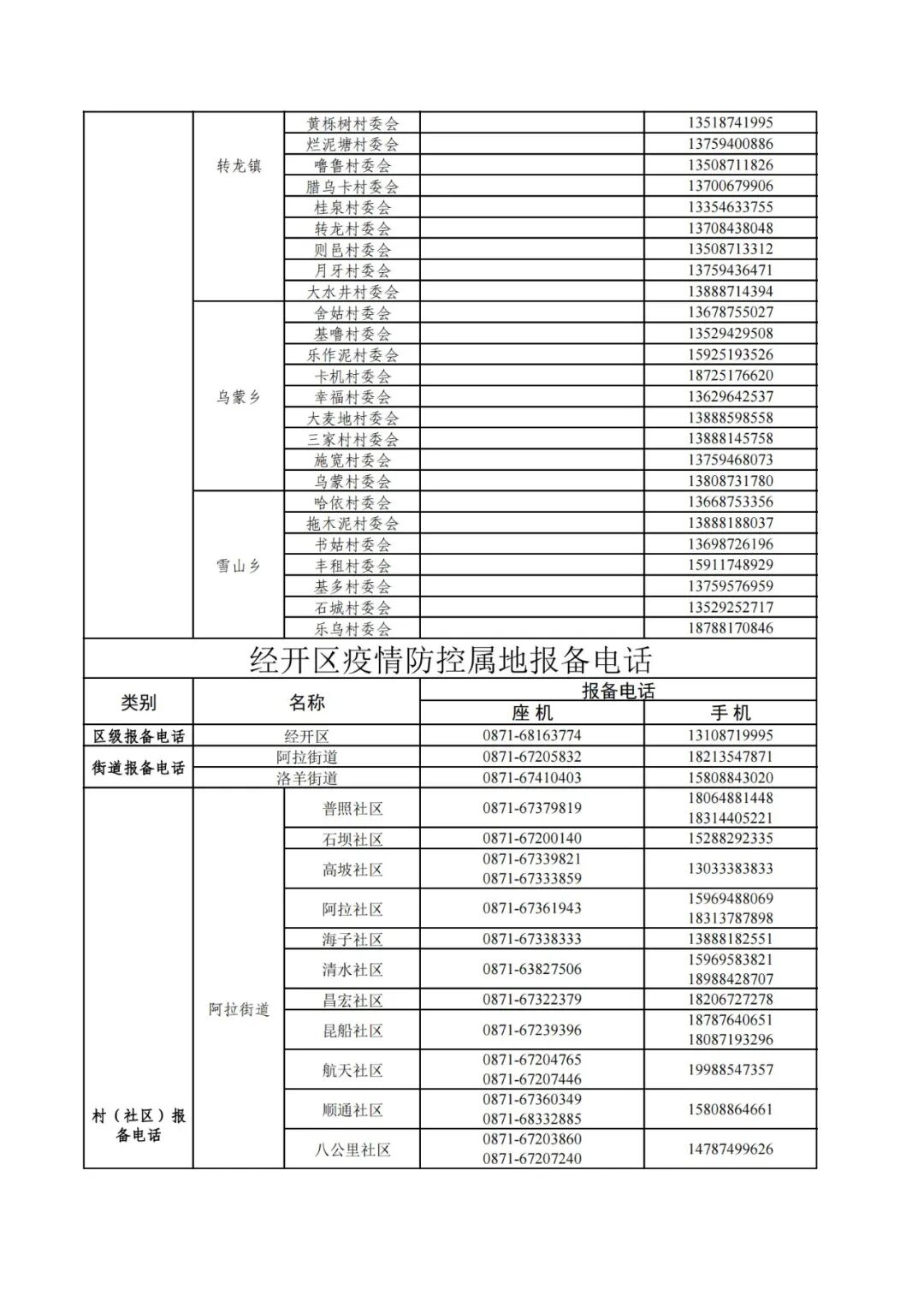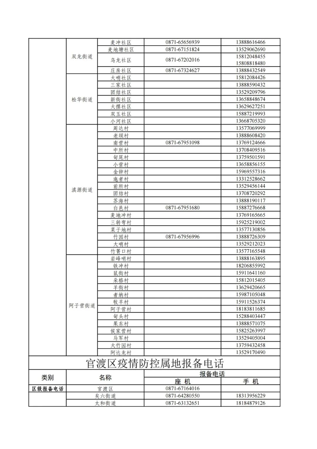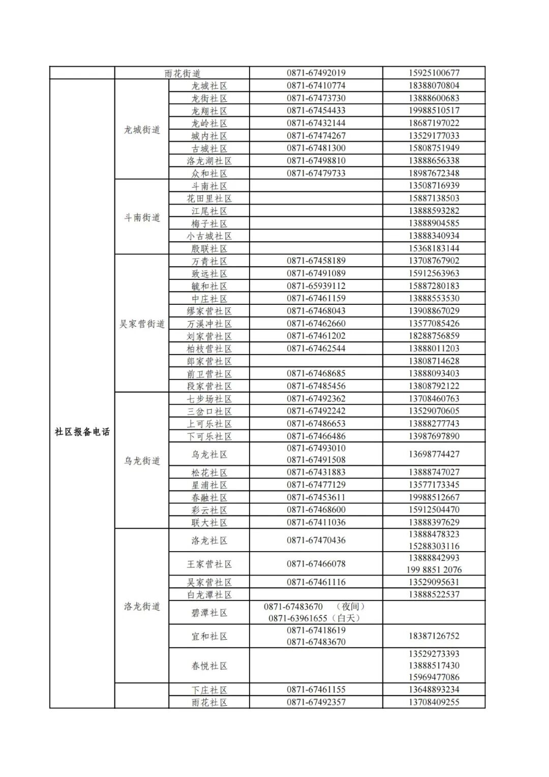 昆明市各县(市)区疫情防控社区报备电话