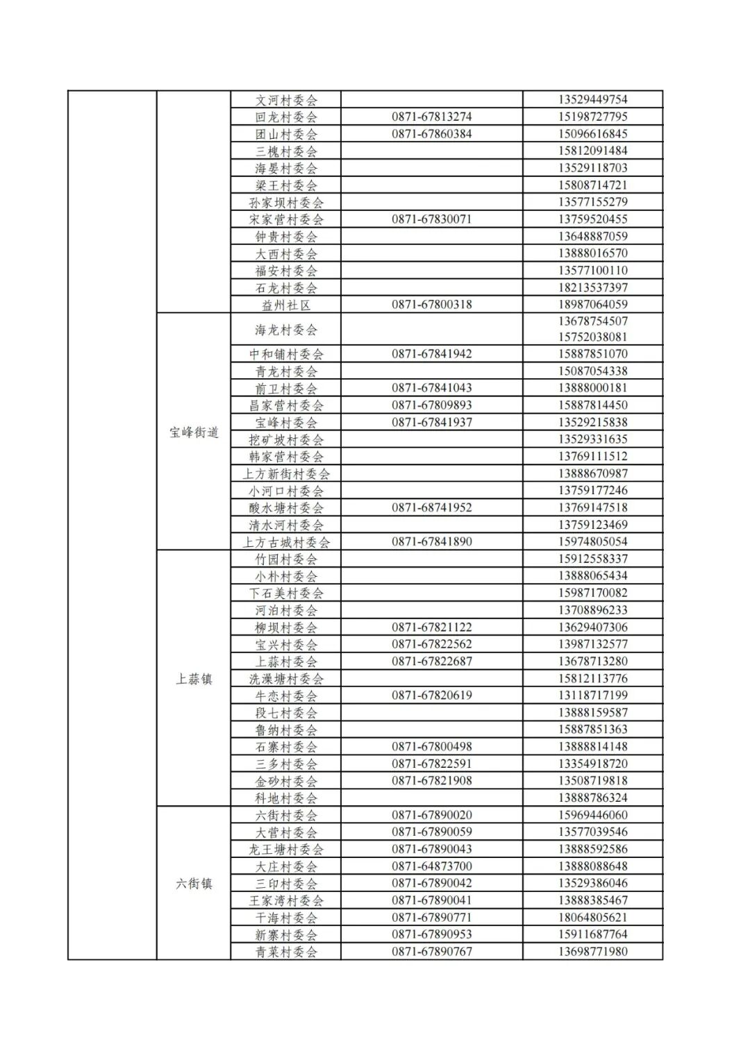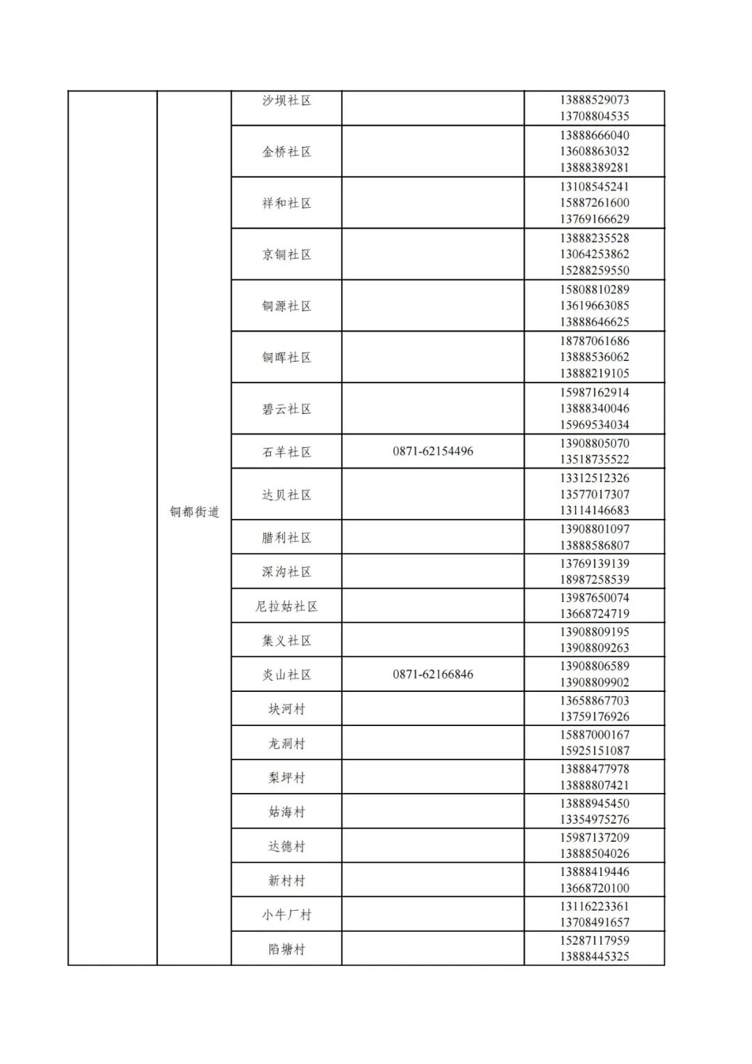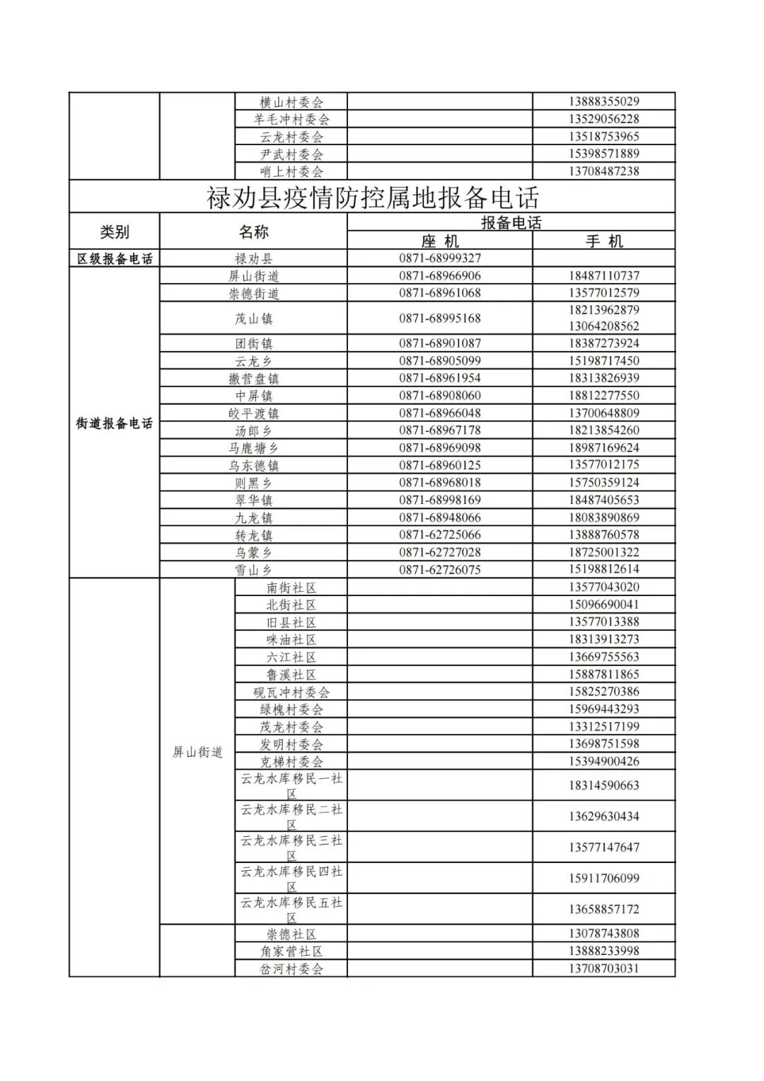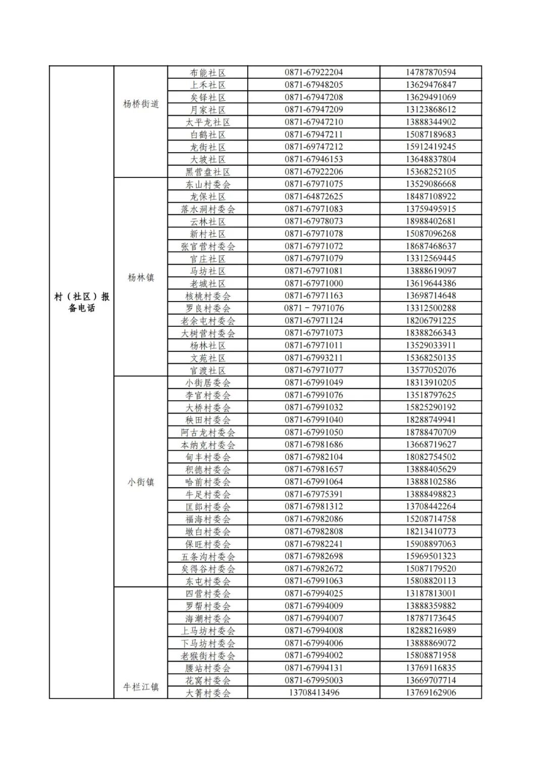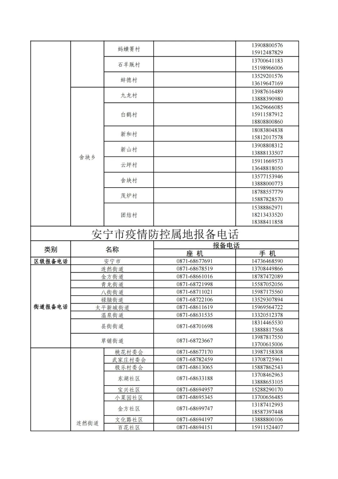 昆明市各县(市)区疫情防控社区报备电话