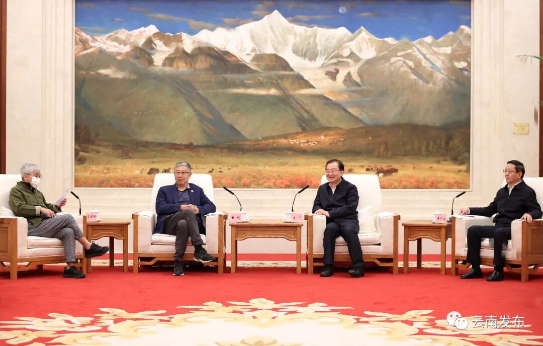 两院院士费维扬、李灿、朱日祥、周忠和、郭正堂、汤涛、潘永信、胡瑞忠、王兴治、张福锁,云南省李刚、邱江、张治礼、孙灿参加会见。