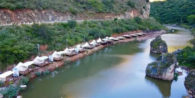 帐篷露营是大窝村旅游的特色,夜晚宿在帐篷里,吹着山谷里的凉风,赏星星、看月亮、听虫鸣,慢悠悠地享受休闲时光。这里还有水温达40℃以上的天然温泉,为你一洗旅途的疲惫,享受清爽舒适。