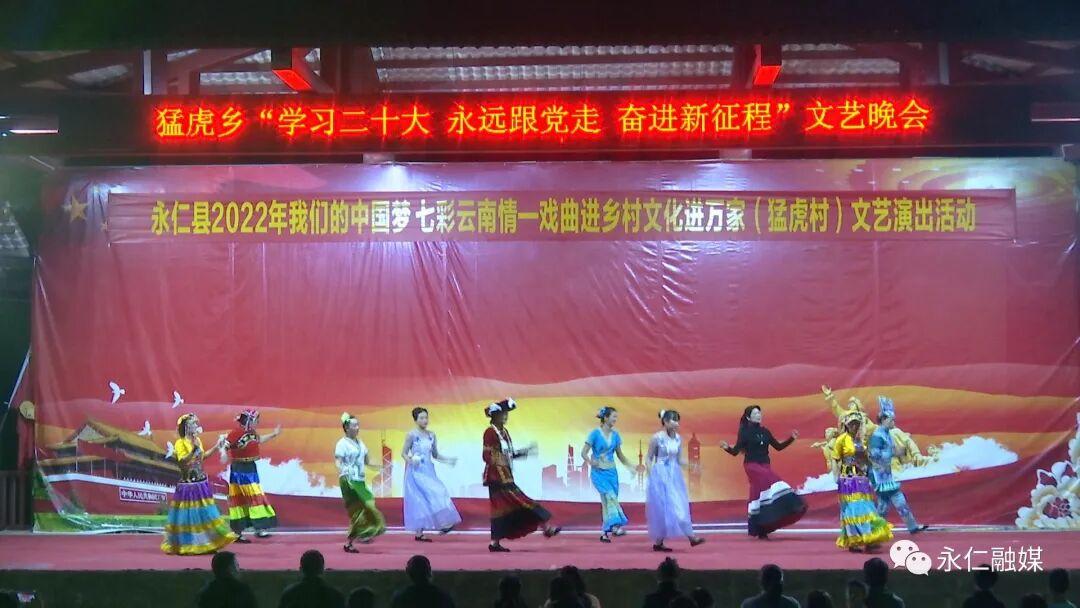 “竹板一打哗哗响,党的政策我来讲,百年梦想一朝圆,百年精神要继承,特色思想深领会,全面开启新征程,阔步走进二十大,意气风发勇向前。”11月9日晚,在永仁县猛虎乡文化广场,迎来了一场以“学习二十大·永远跟党走·奋进新征程”为主题的文艺演出。乡村静谧的夜晚因为一场宣讲演出热闹了起来。