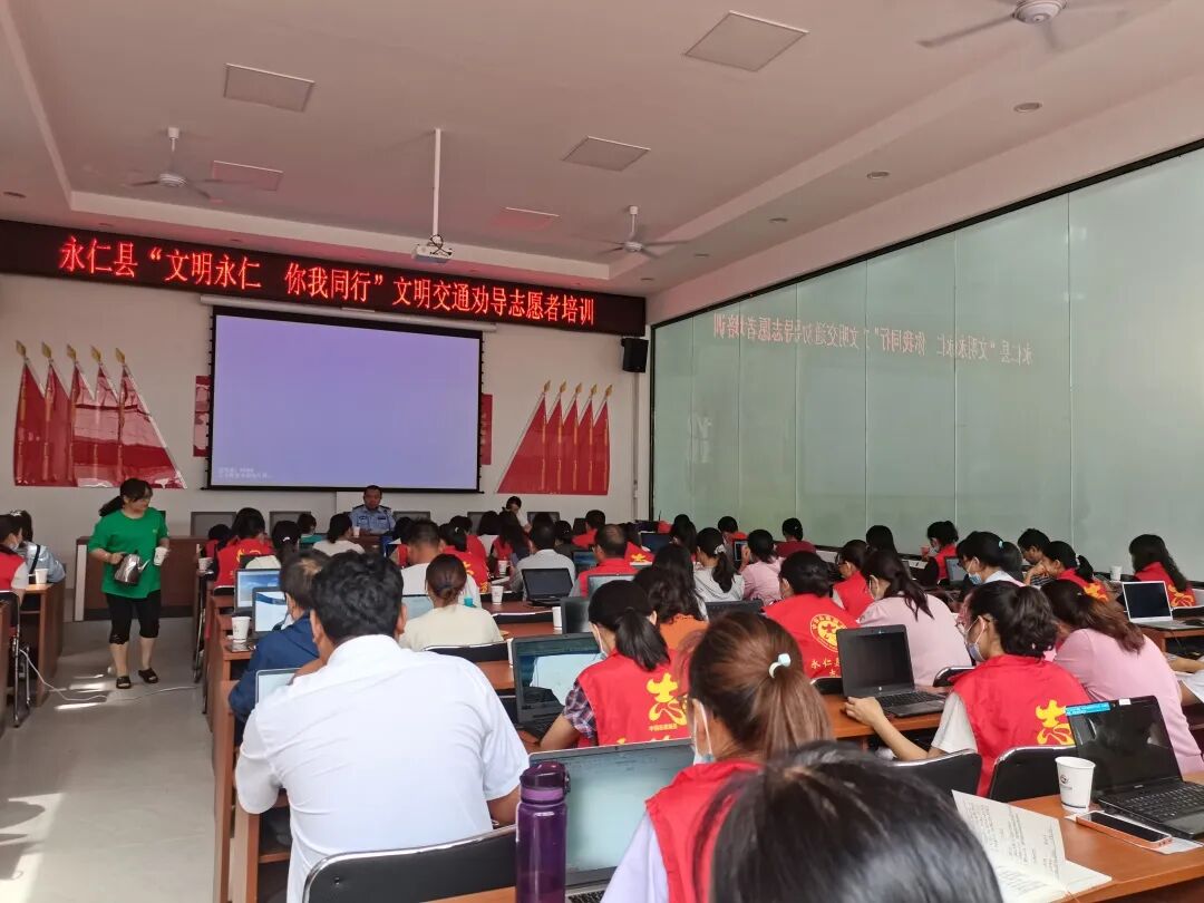 为做好文明劝导工作,永仁县公安局交警大队多次组织志愿者开展岗前培训,涉及文明礼仪、岗位技能、职能职责等方面内容,通过培训进一步指导志愿者科学、安全、有序地开展志愿服务,提升志愿服务能力,彰显志愿服务风采。