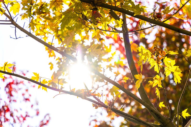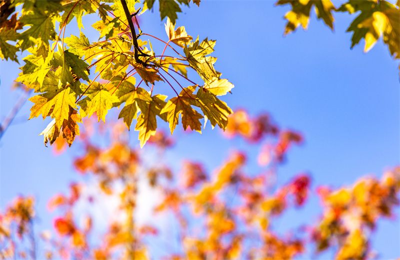 就能看到一棵棵或金黄、或鲜红的枫树