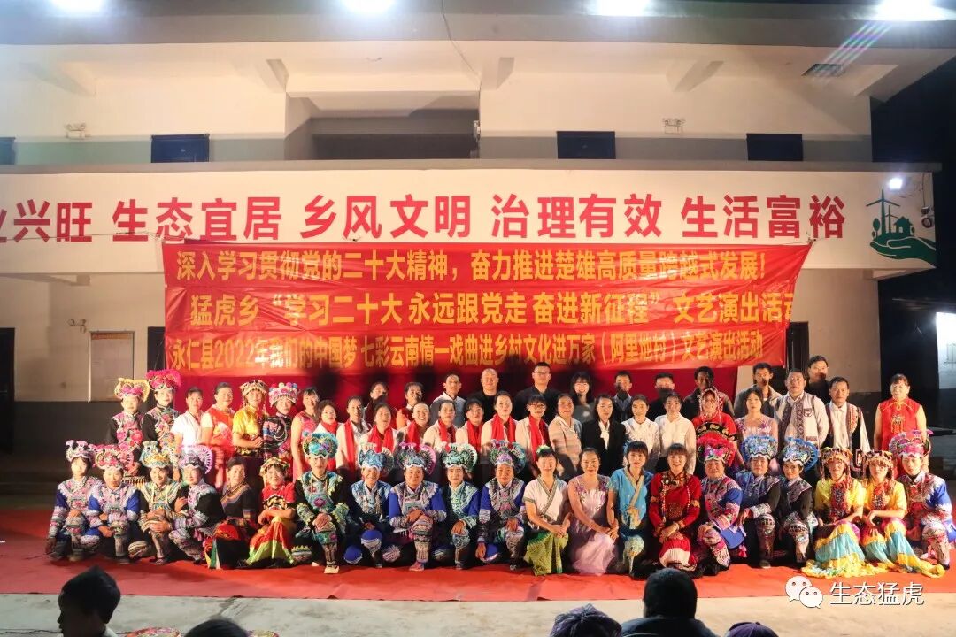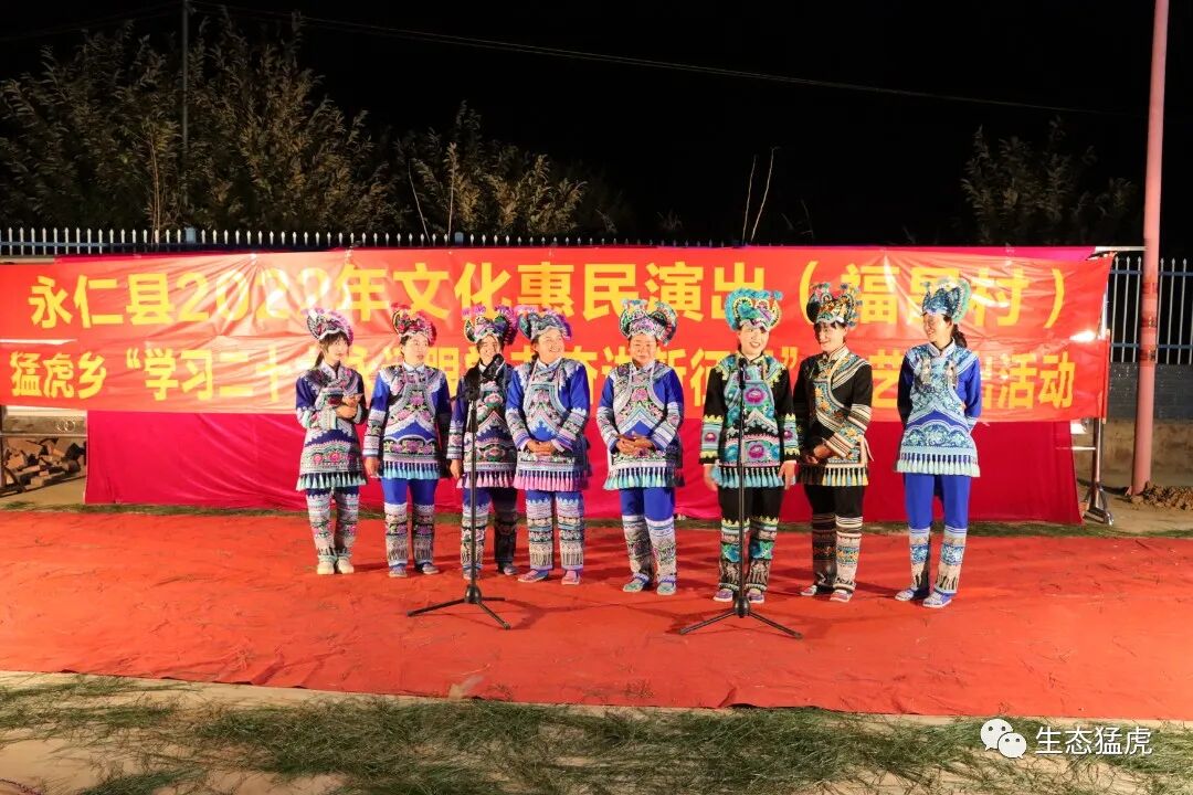 此外,猛虎乡还以“村晚”的形式,整合乡村组文化资源,围绕党的二十大、民族团结等题材自编自导10个节目,以小彝剧、舞蹈、快板、花灯、三句半、合唱等文艺形式在乡村大舞台上呈现。