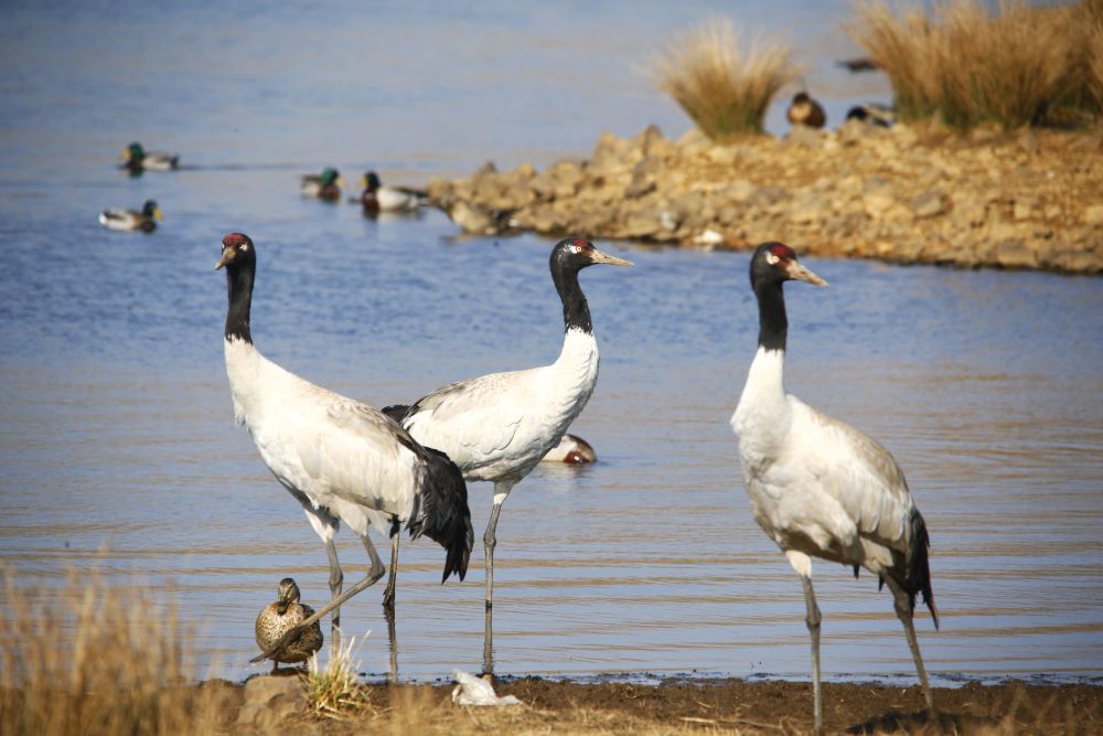 黑颈鹤是国家一级重点保护野生动物。位于云南省昭通市昭阳区的大山包黑颈鹤国家级自然保护区,是我国黑颈鹤单位面积数量分布最多的保护区。自保护区建立以来,这里逐渐成为黑颈鹤在云贵高原上最重要的越冬栖息地和迁徙中转站。