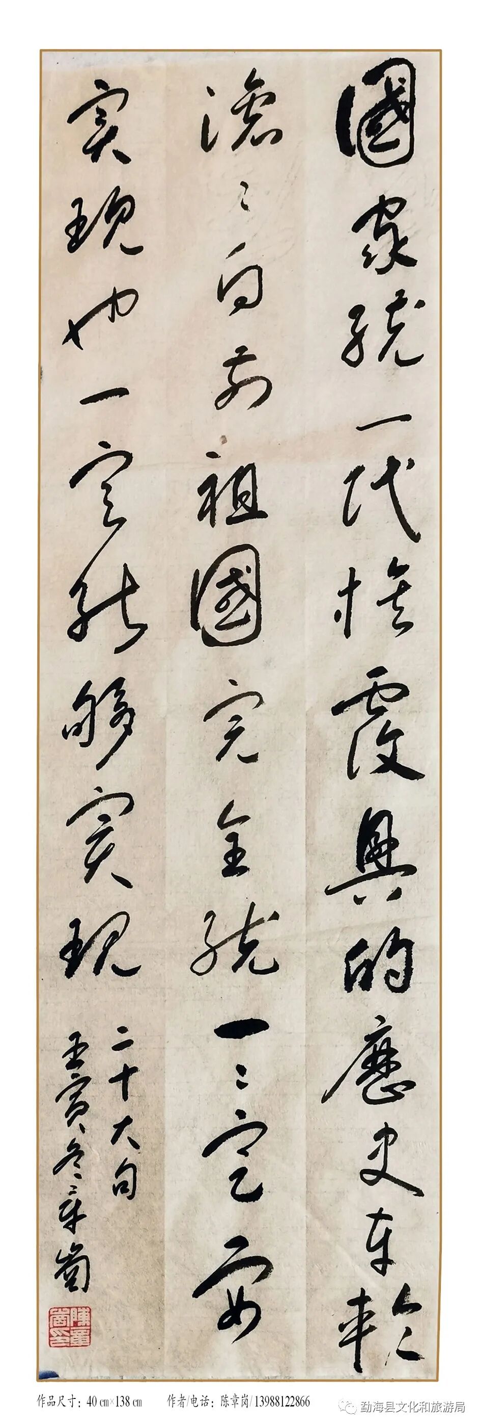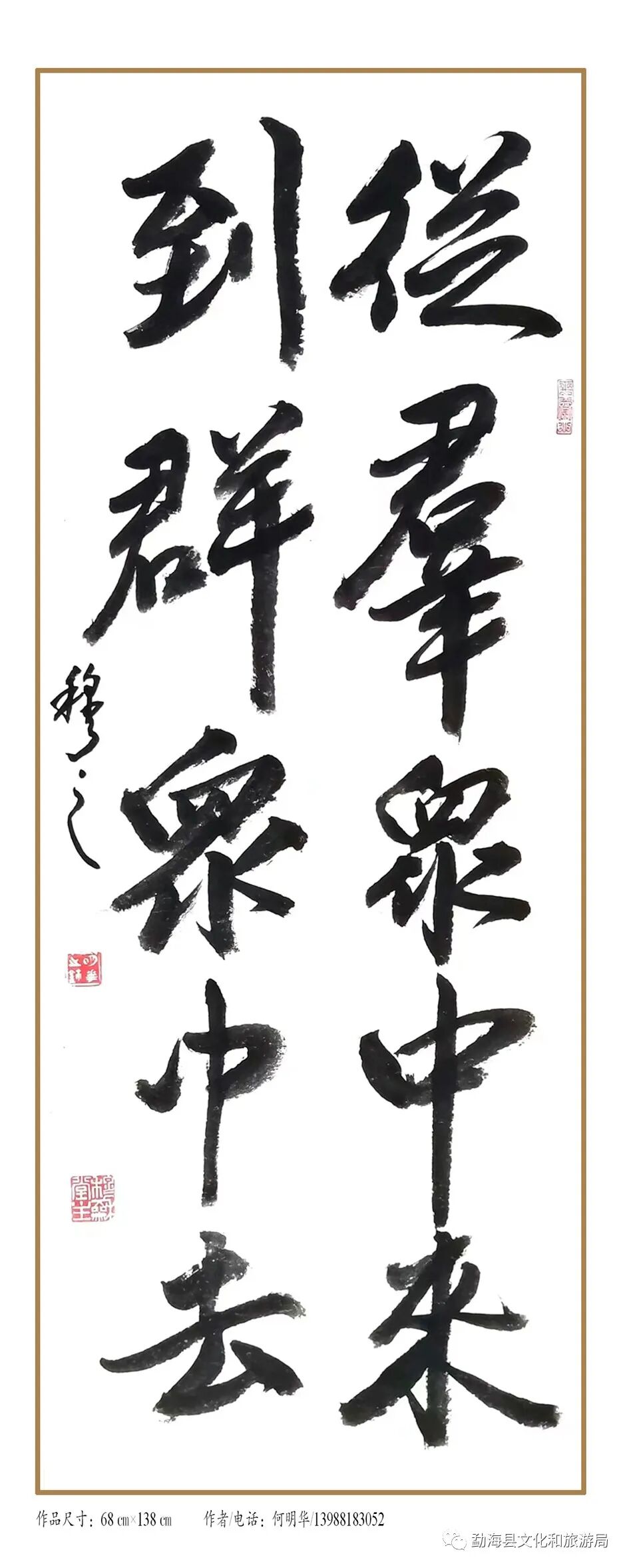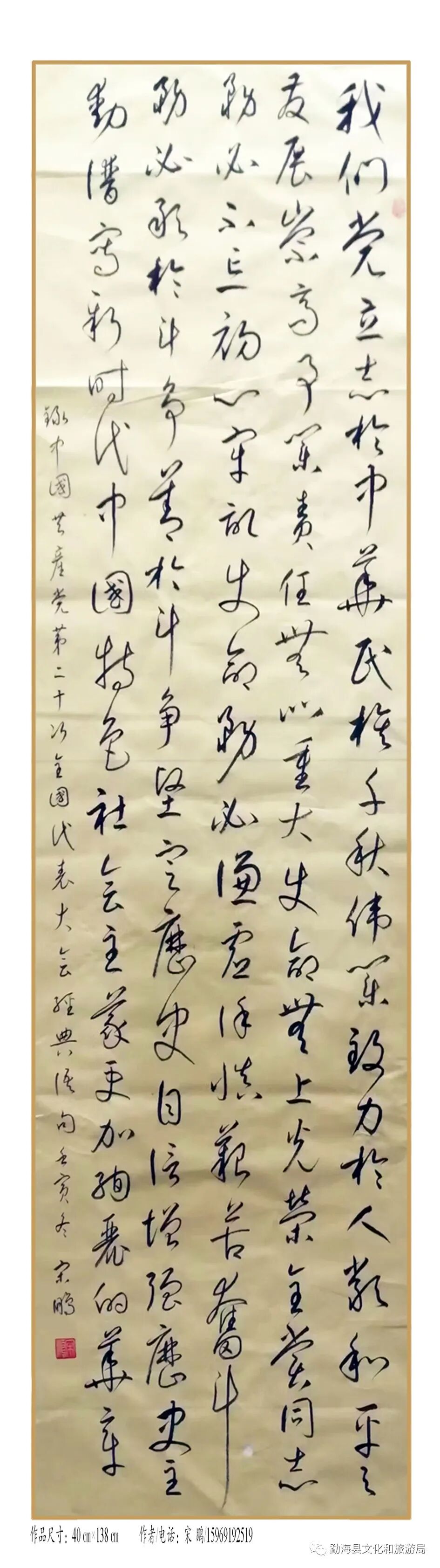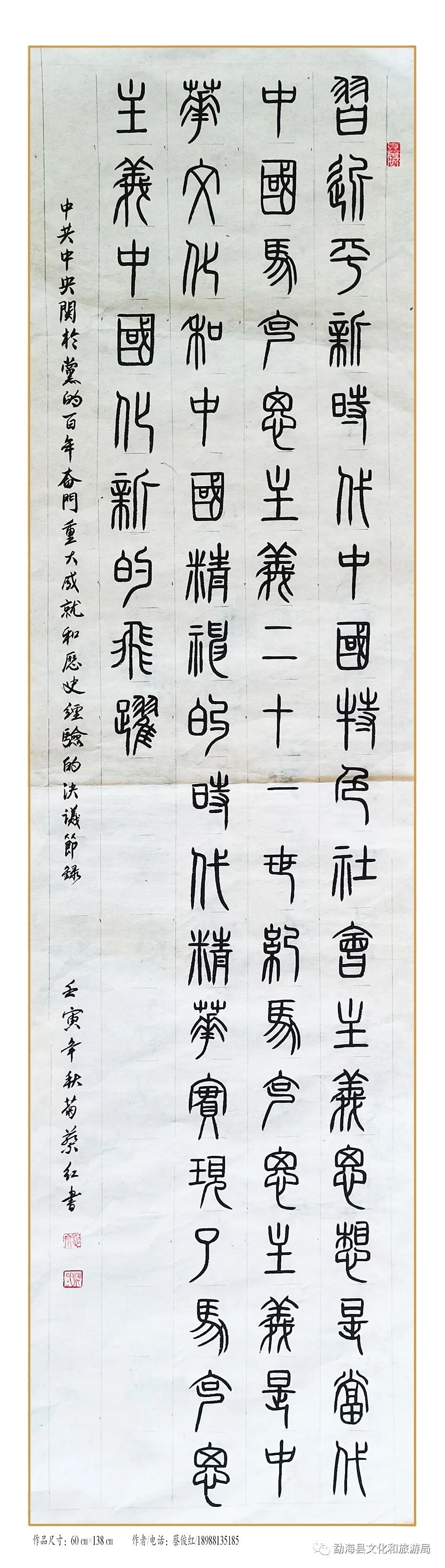 由勐海县文化和旅游局主办、勐海县文学艺术界联合会承办的“礼赞新时代·奋进新征程”书法作品网络展已于11月30日正式上线,将通过“云南公共文化云”“西双版纳掌上文旅”“春韵勐海”“勐海县文化和旅游局”“艺韵茶乡”等网络媒体相继进行线上展览。