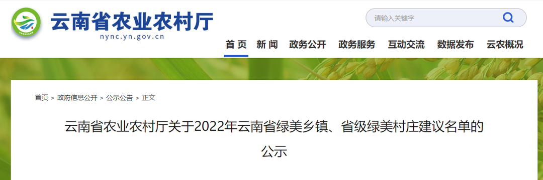 云南省农业农村厅关于2022年云南省绿美乡镇、省级绿美村庄建议名单的公示