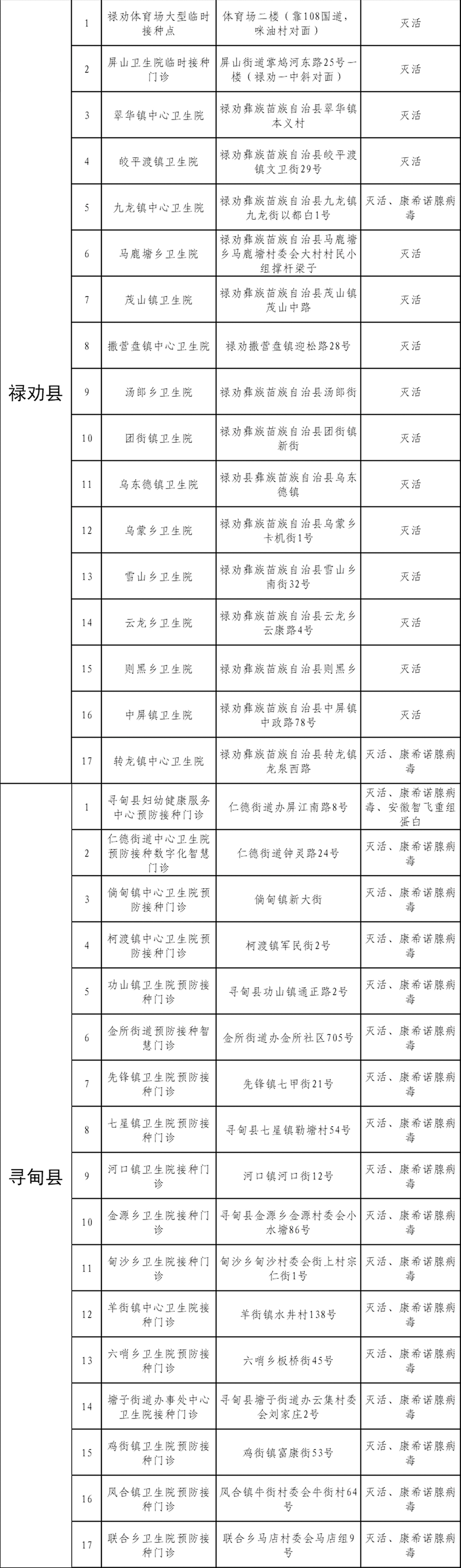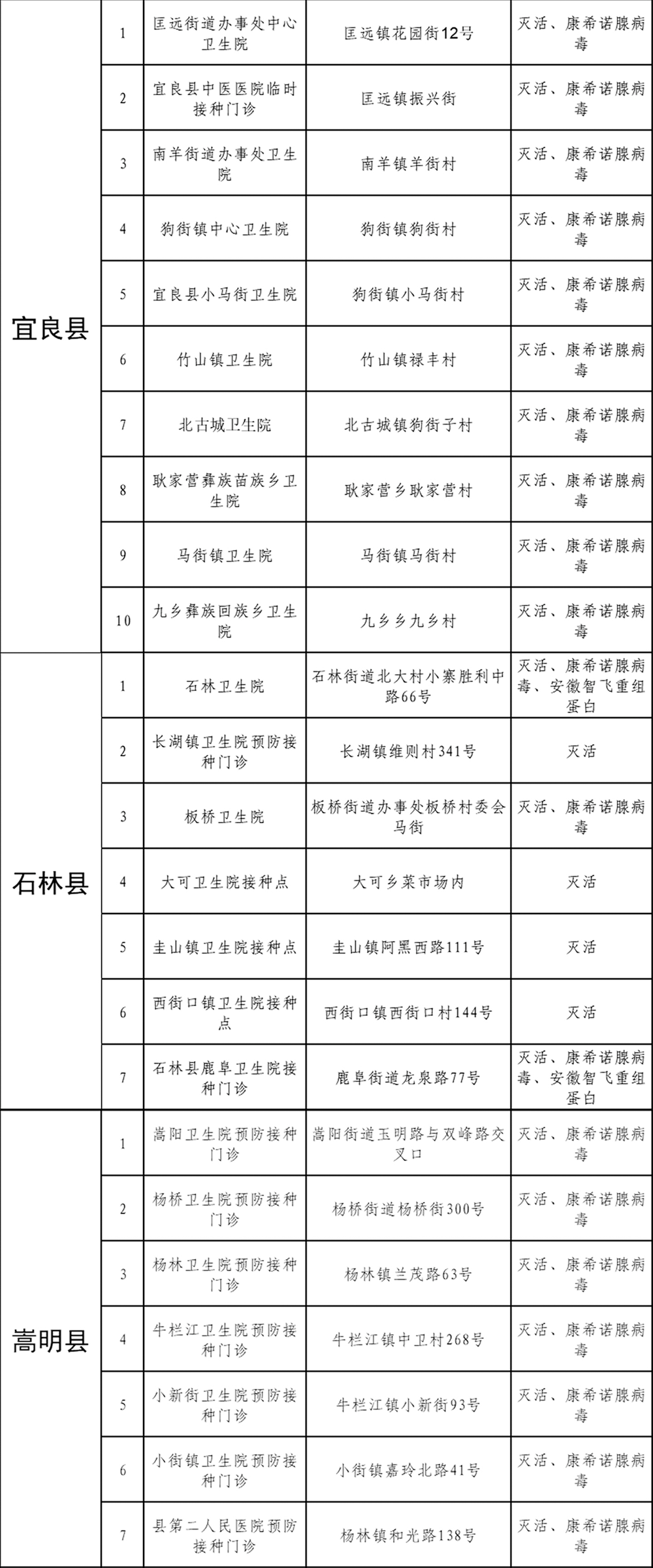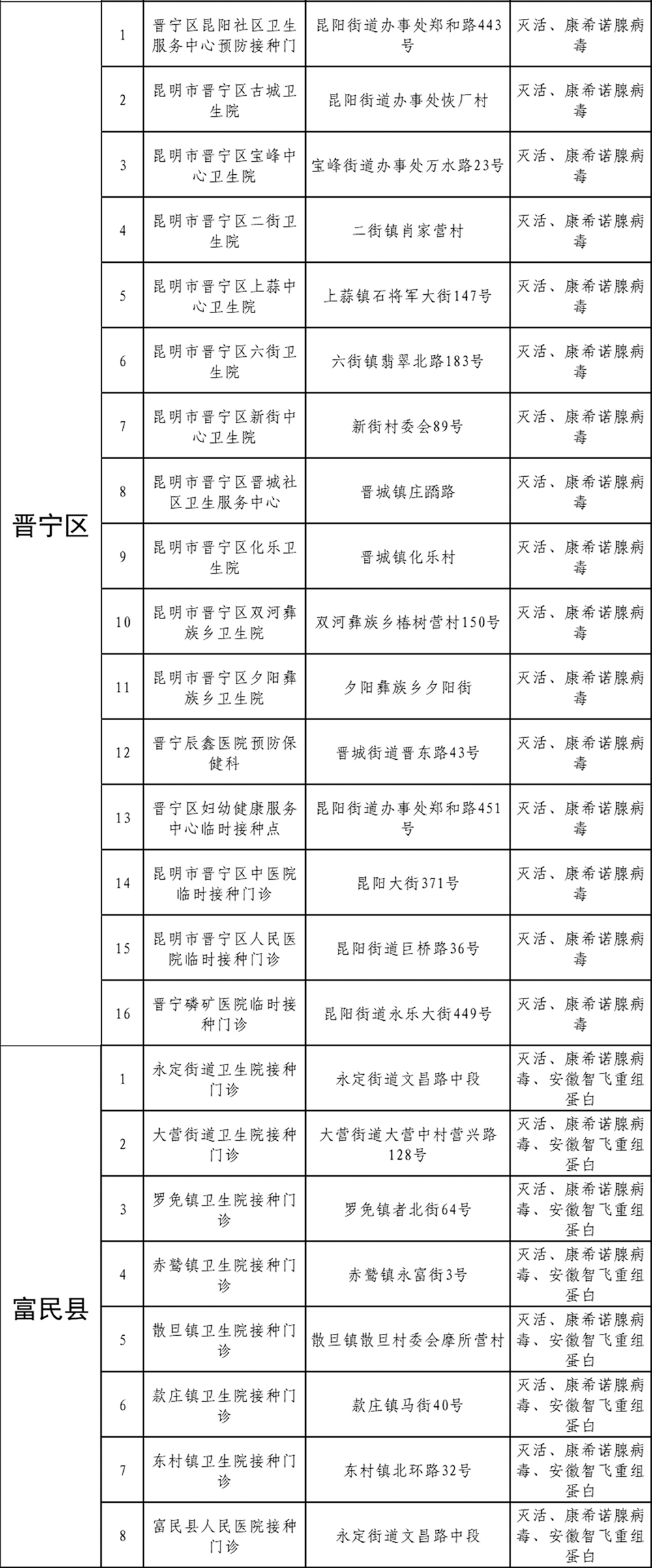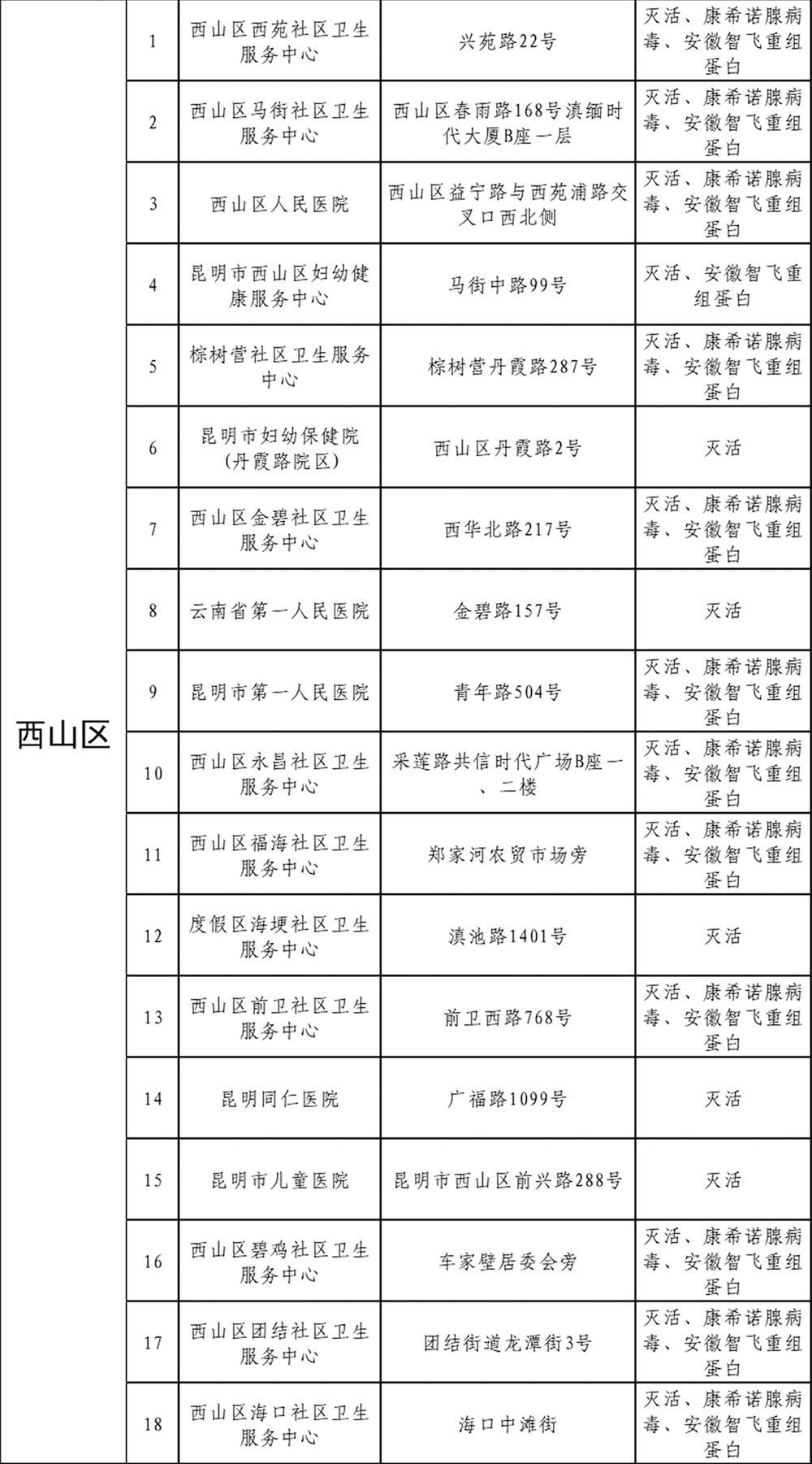 新冠疫苗接种点位