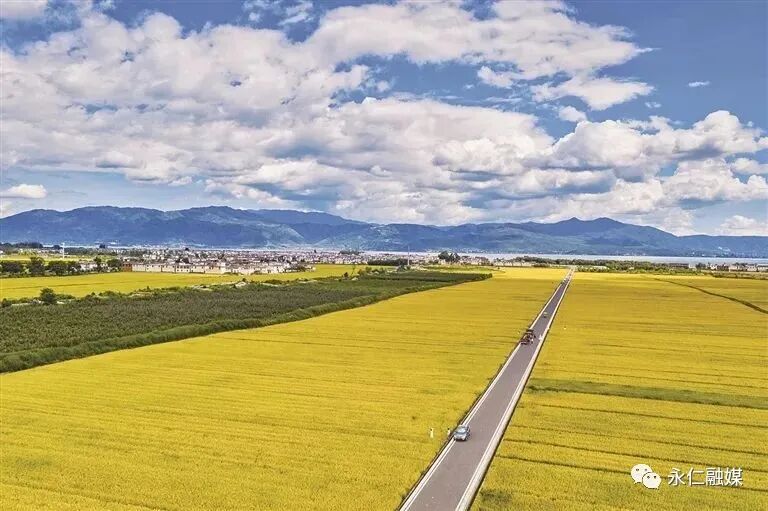 (大理市喜洲镇中和邑村附近成片黄澄澄的稻田 图源:大理日报)