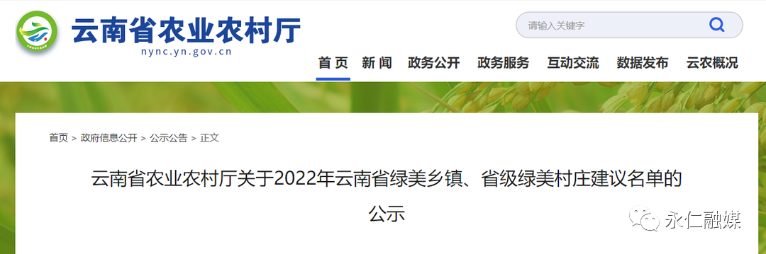 云南省农业农村厅关于2022年云南省绿美乡镇、省级绿美村庄建议名单的公示