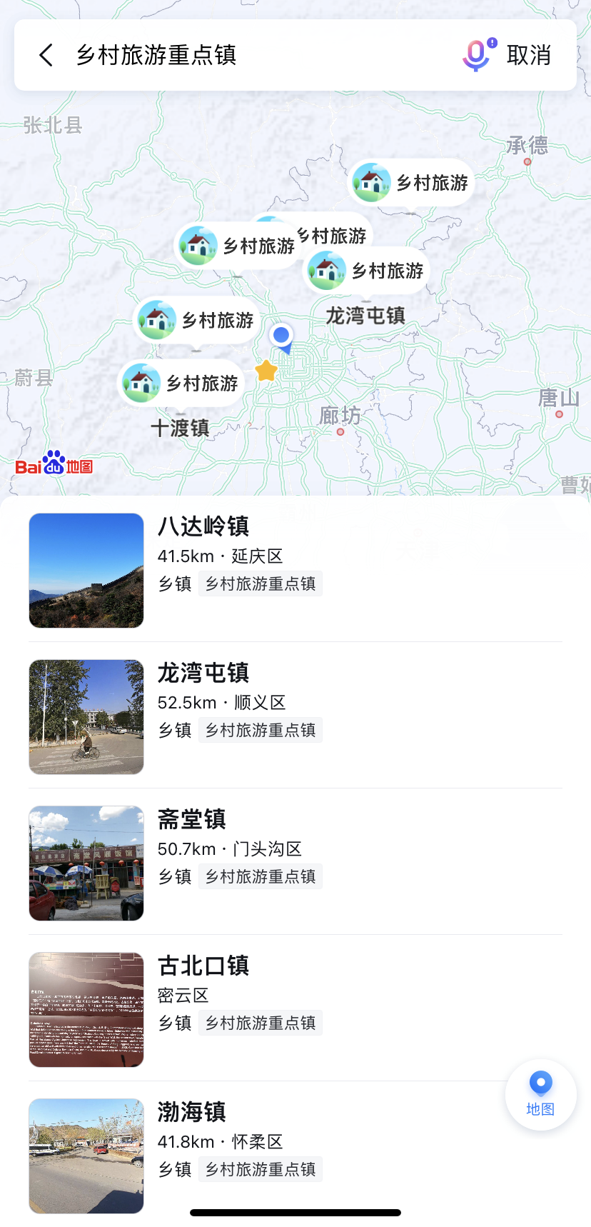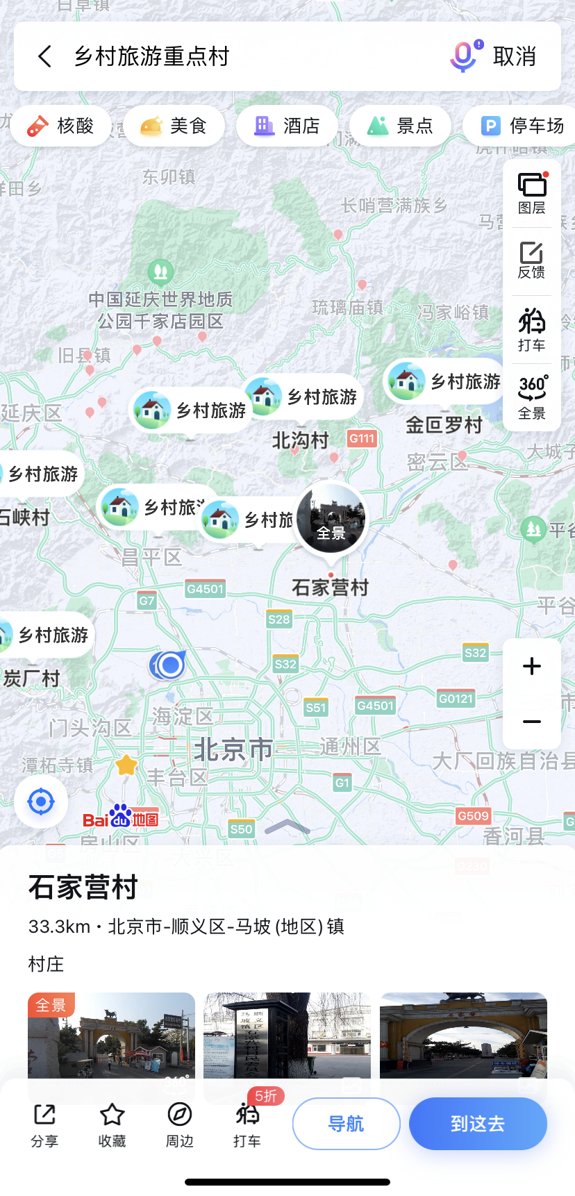 现在,通过百度地图APP首页搜索“乡村旅游重点村”“乡村旅游重点镇”,即可快速查询附近的乡村旅游重点村镇,点击就能查看地点概况、村庄相册等。乡村美景尽在掌握,“诗和远方”就在身边,一键发起导航,还能规划最优路线。
