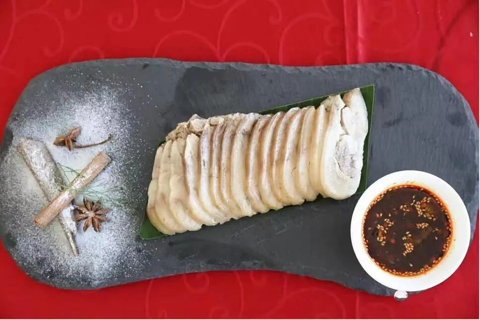 这个菜做法讲究,先将优选的土猪蹄刮毛去垢,洗净开边,横刀斩断筋骨,开水里焯一下,去除血污,将啦井桃花盐与猪蹄一起煮熟,然后取出晾凉,切成薄片蘸酱吃,香气浓郁,皮肉嫩滑,肥而不腻,咸而有度,口感极佳。